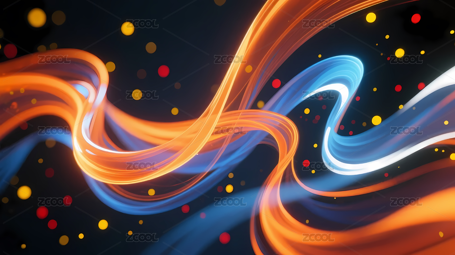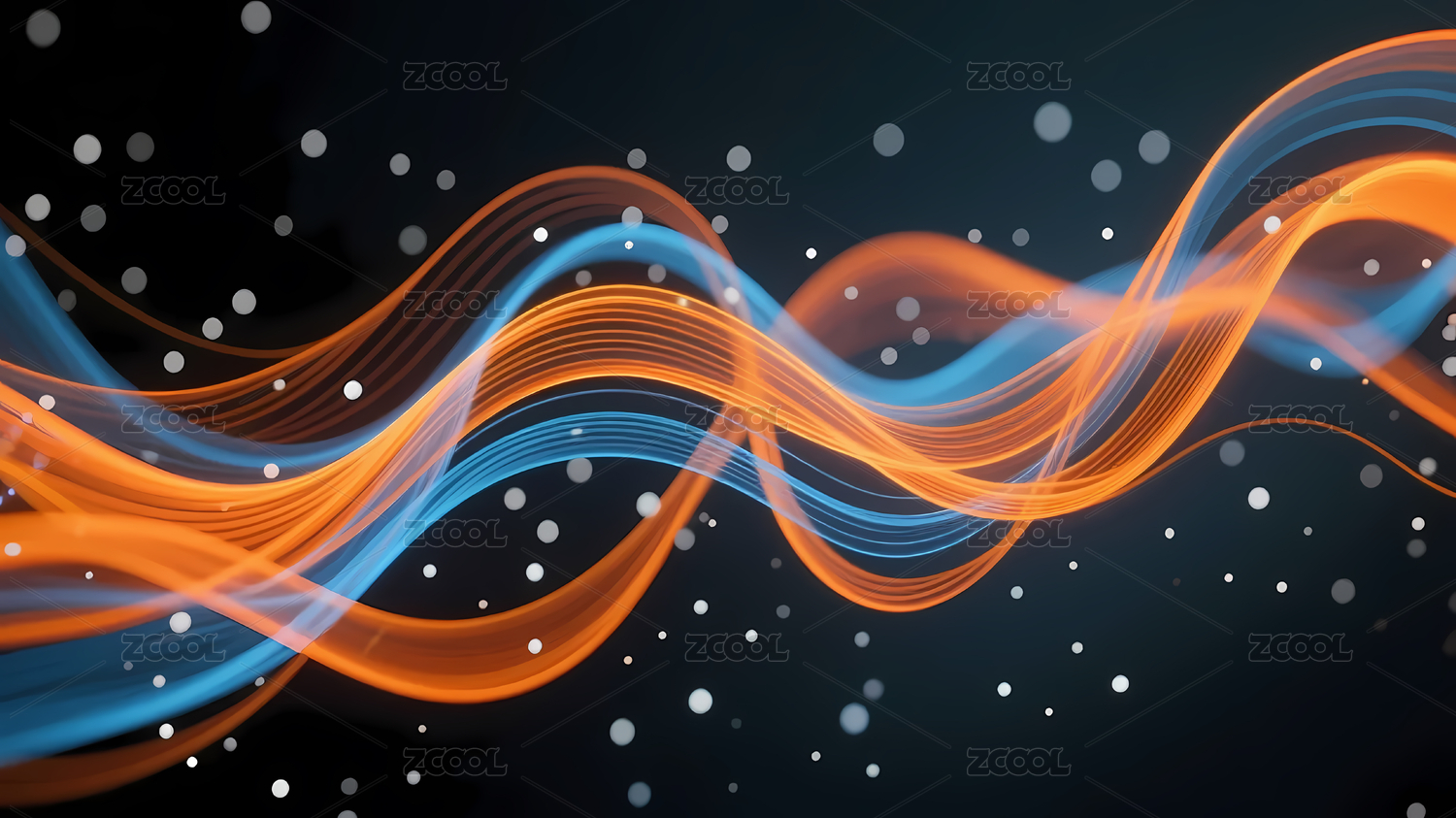 深色背景蓝橙波浪光点