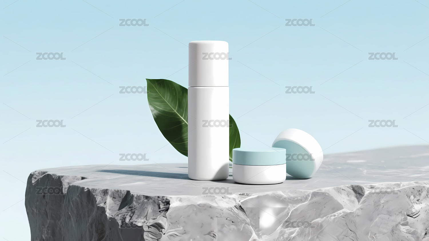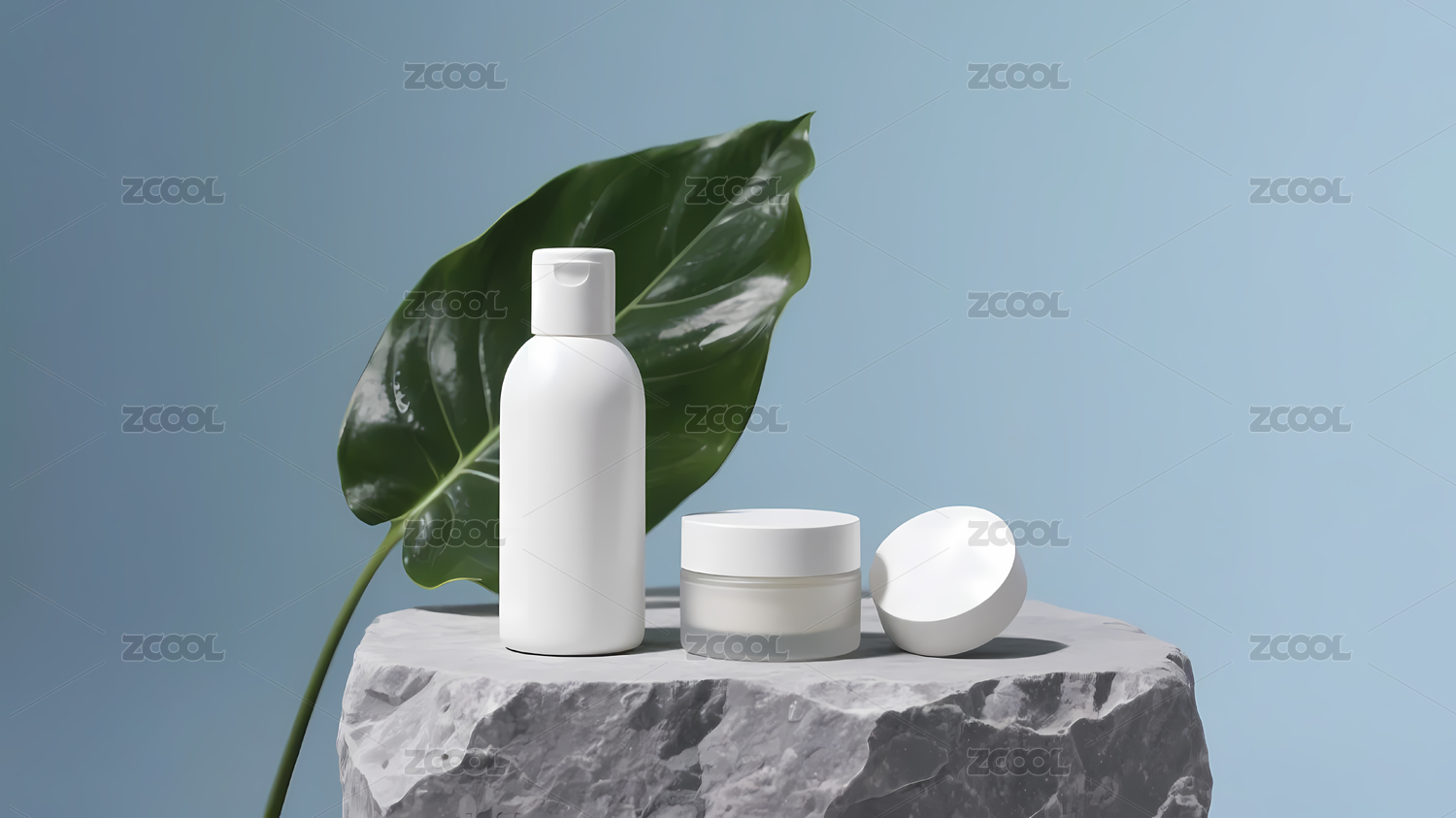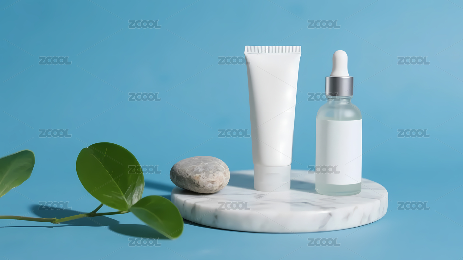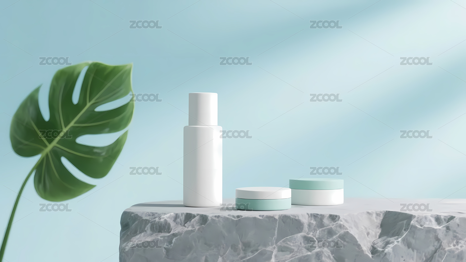 背景,白色,绿色,自然,浅蓝,台面,棕榈叶,乳液瓶,罐子,大理石