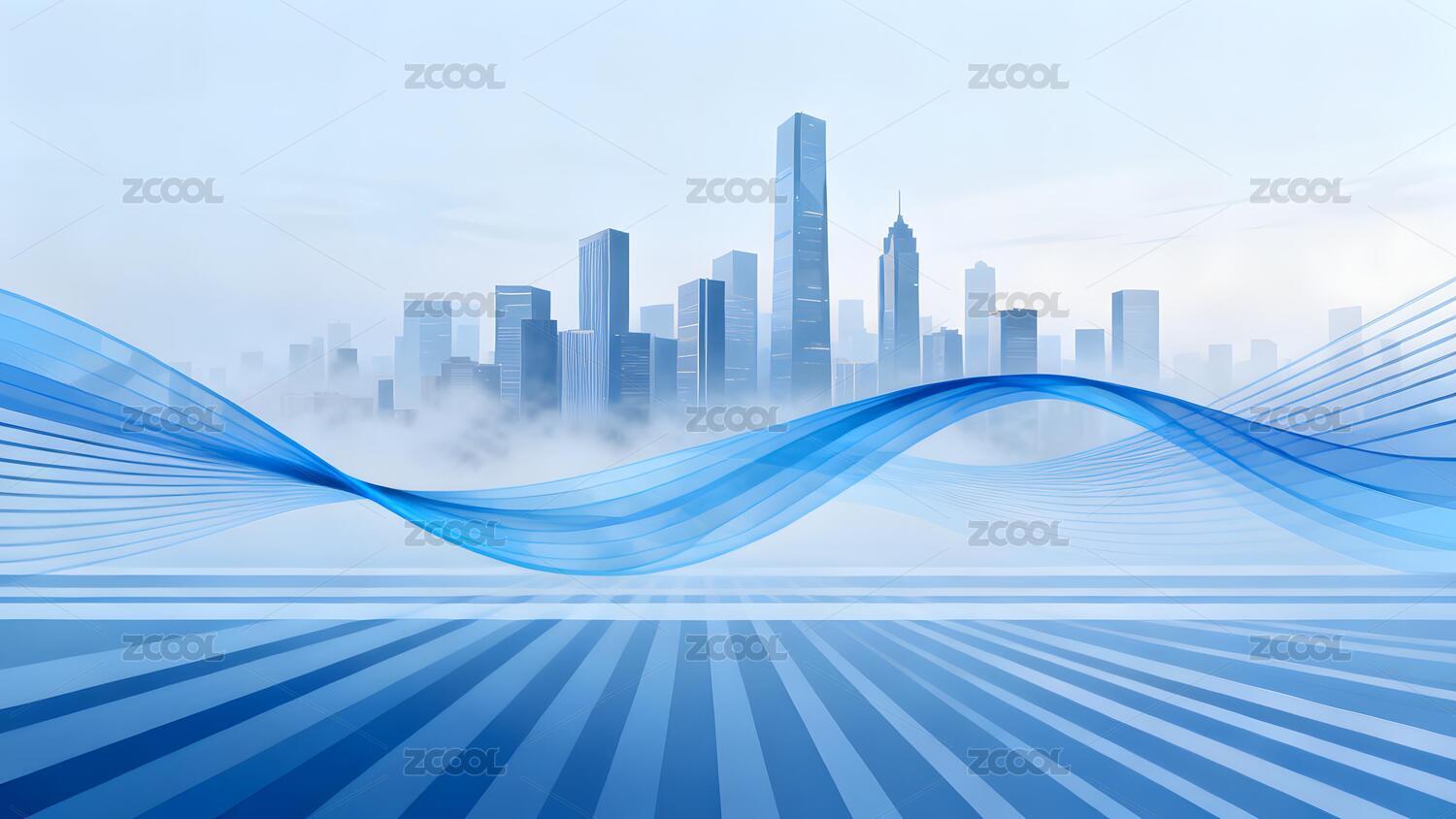蓝色,渐变,背景,城市,现代,动感,科技,波浪线,高楼,建筑