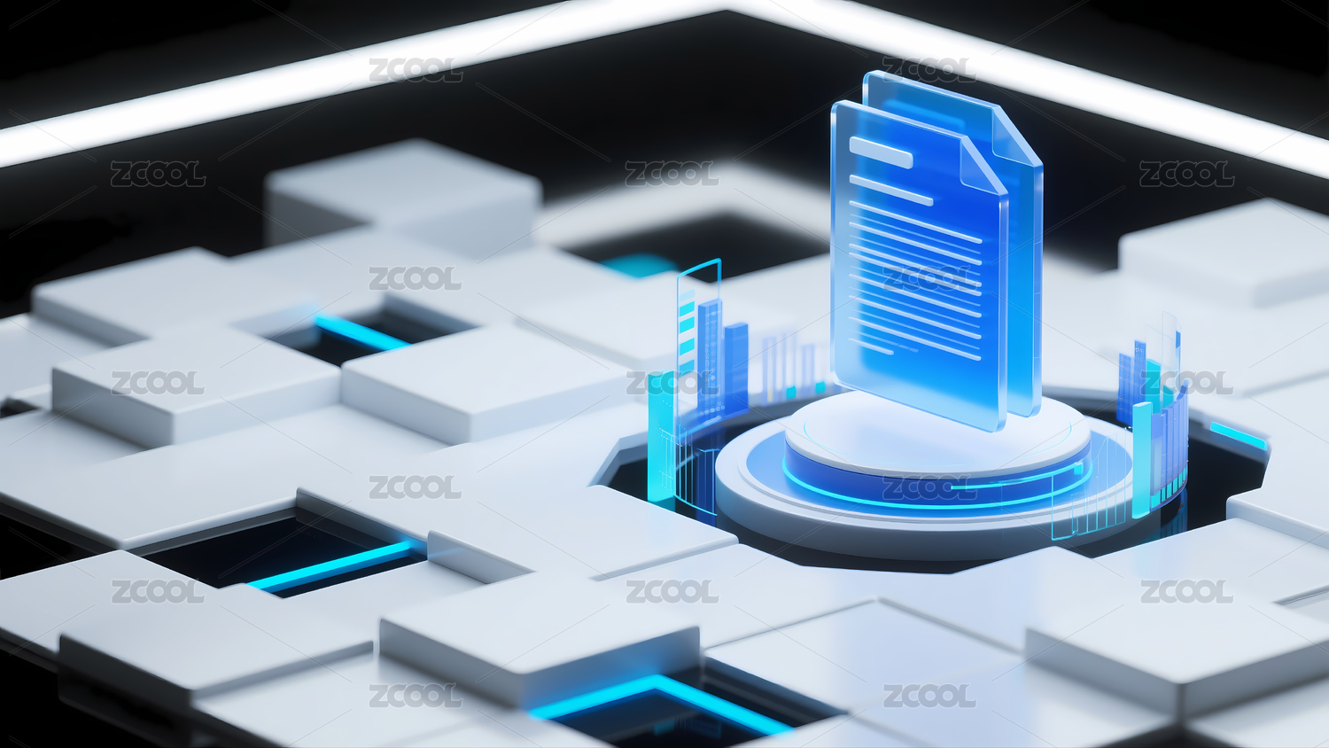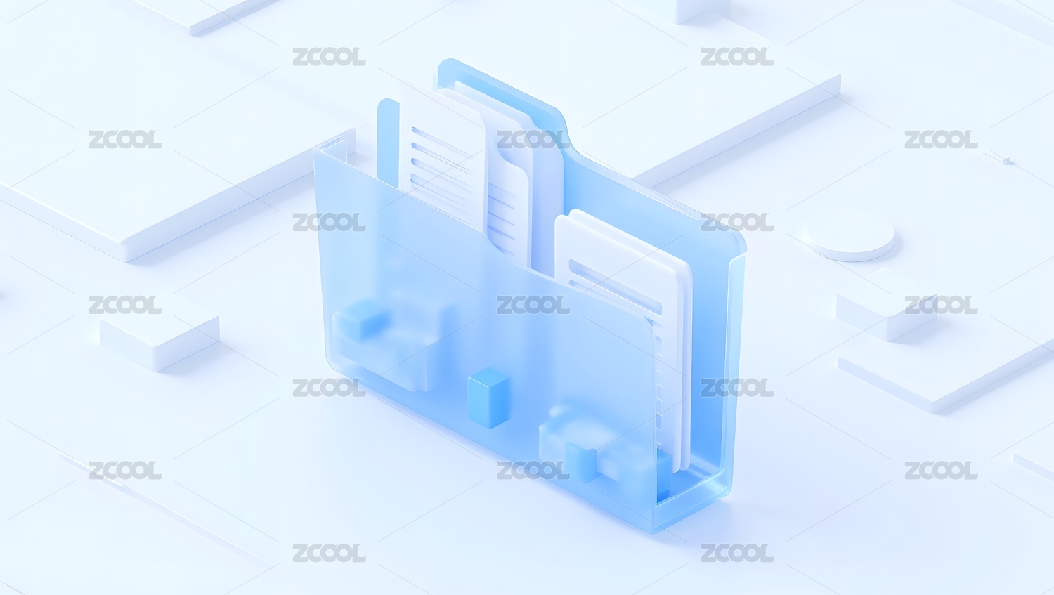 透明文件夹与立方体的科技展示