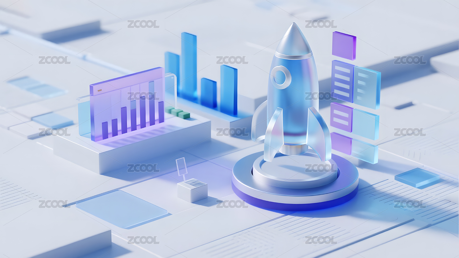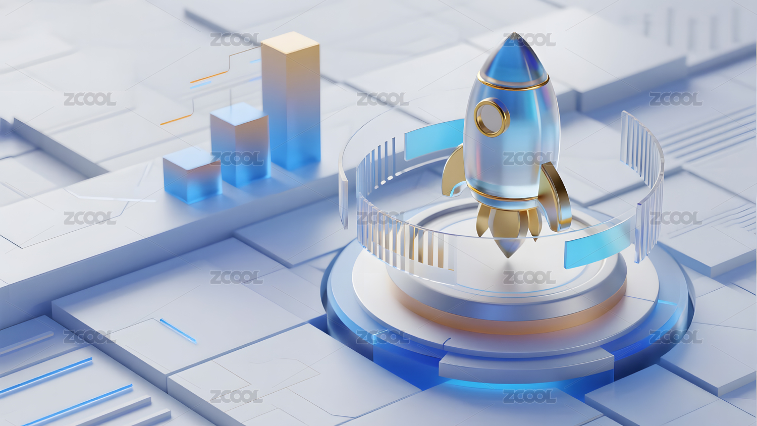 科技感火箭发射与增长图表