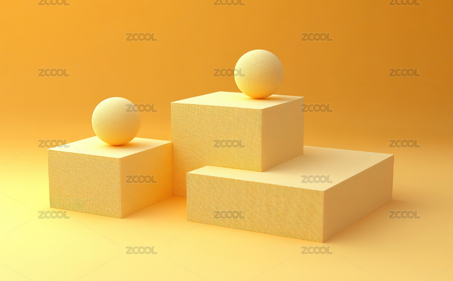 圆形展台上几个球形立体