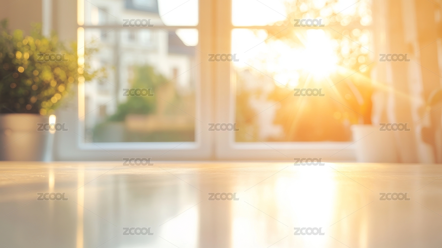 客厅窗边空桌面展台场景