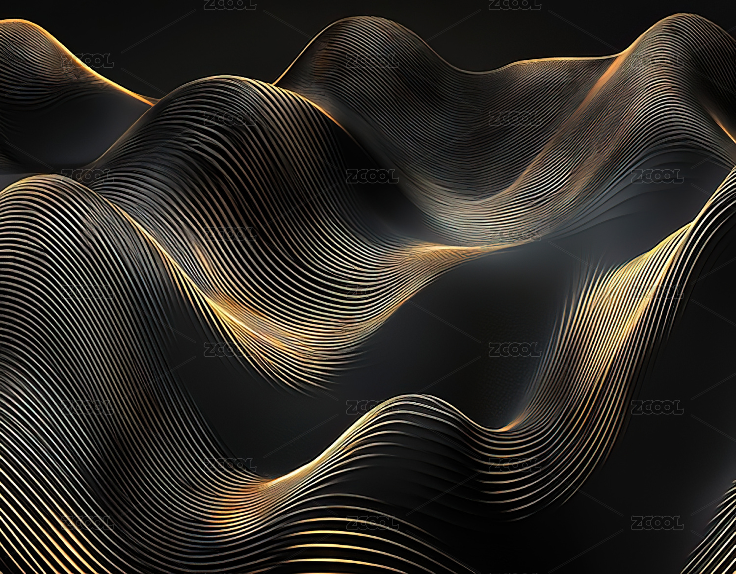 黑色背景上的金色波浪