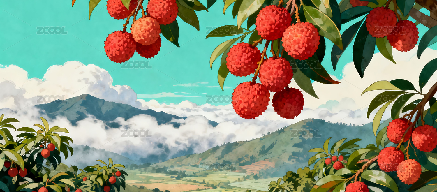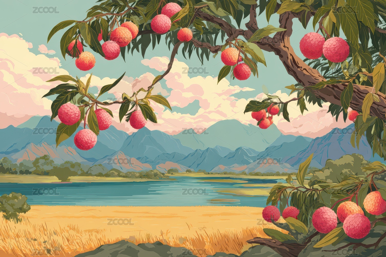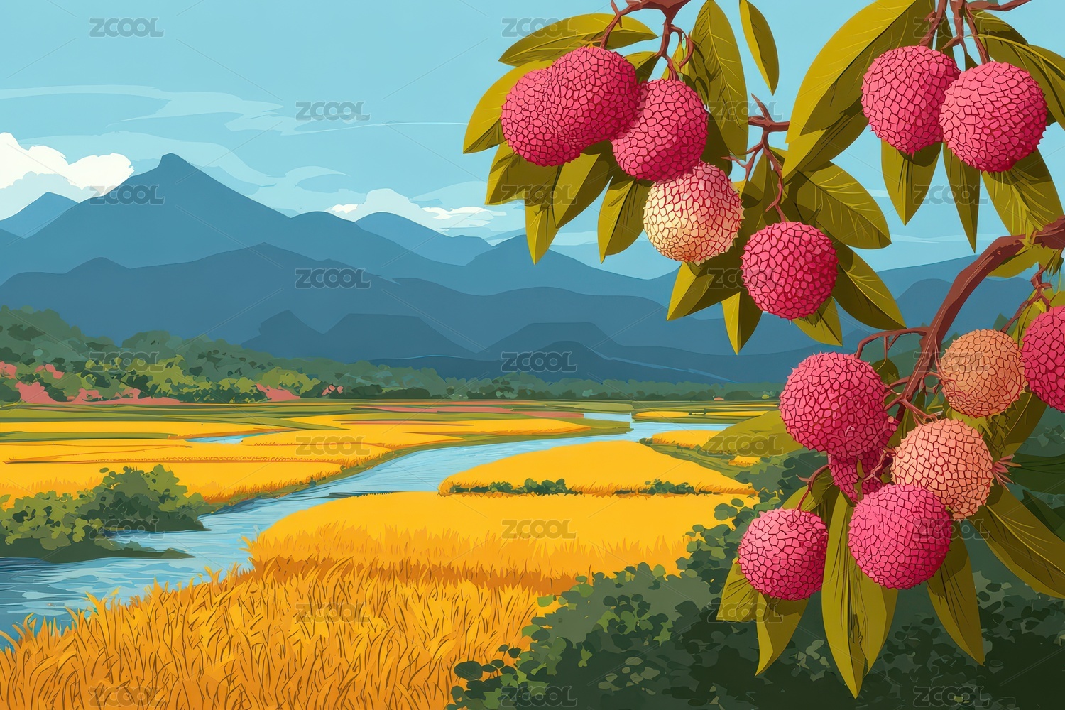 自然,色彩,荔枝,河流,丰收,田园,山脉,收获,风景,乡村