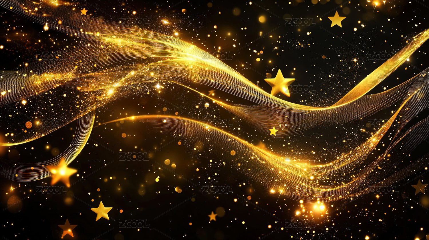星空点缀的金色波浪线条