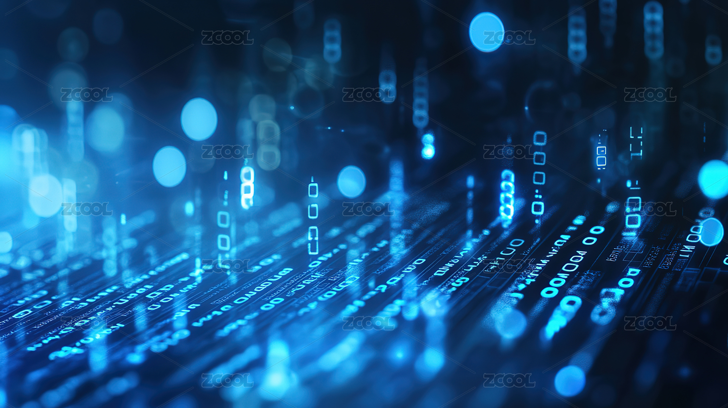 蓝色背景下的二进制代码特写镜头