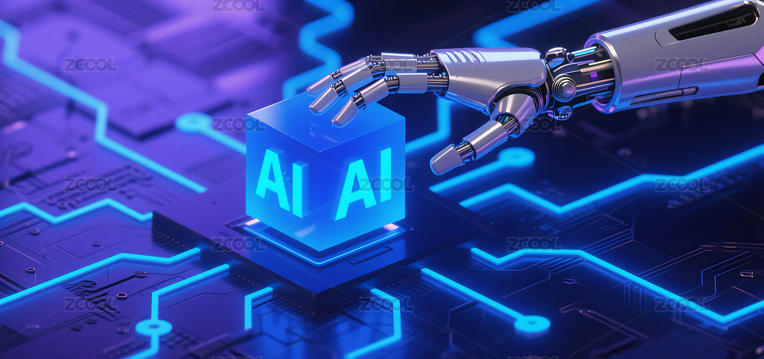 蓝色,科技,图标,AI芯片,商务,主视觉,渐变,光影,毛玻璃,人工智能