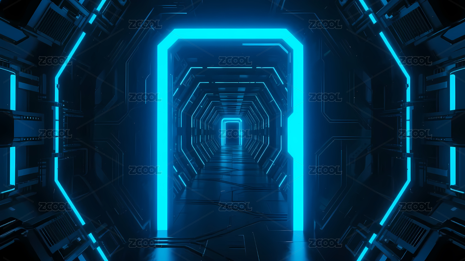 黑色,背景,蓝色,霓虹灯,未来,隧道,六边形,科技,结构,电路板