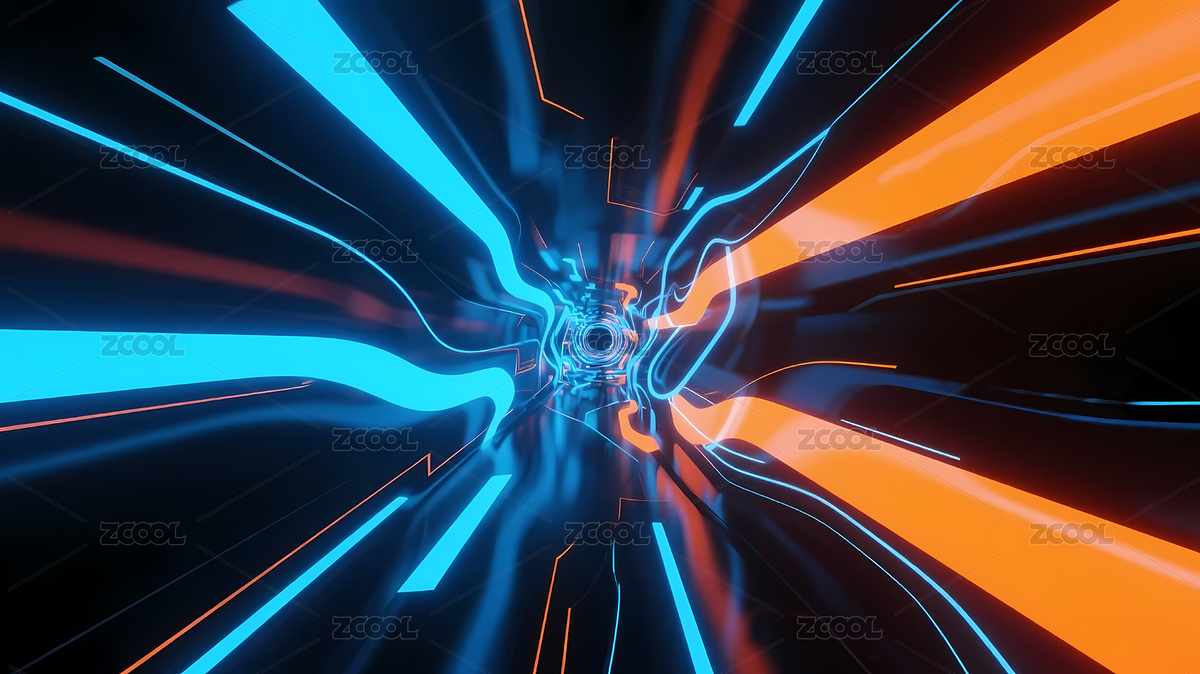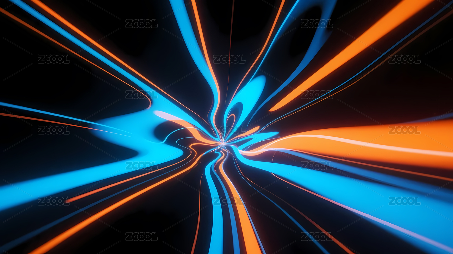 蓝色,背景,橙色,黑色,线条,发光,光带,流动,交织,速度