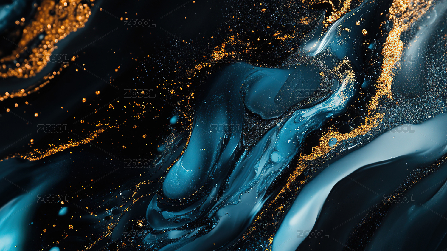 蓝金色颜料流体背景