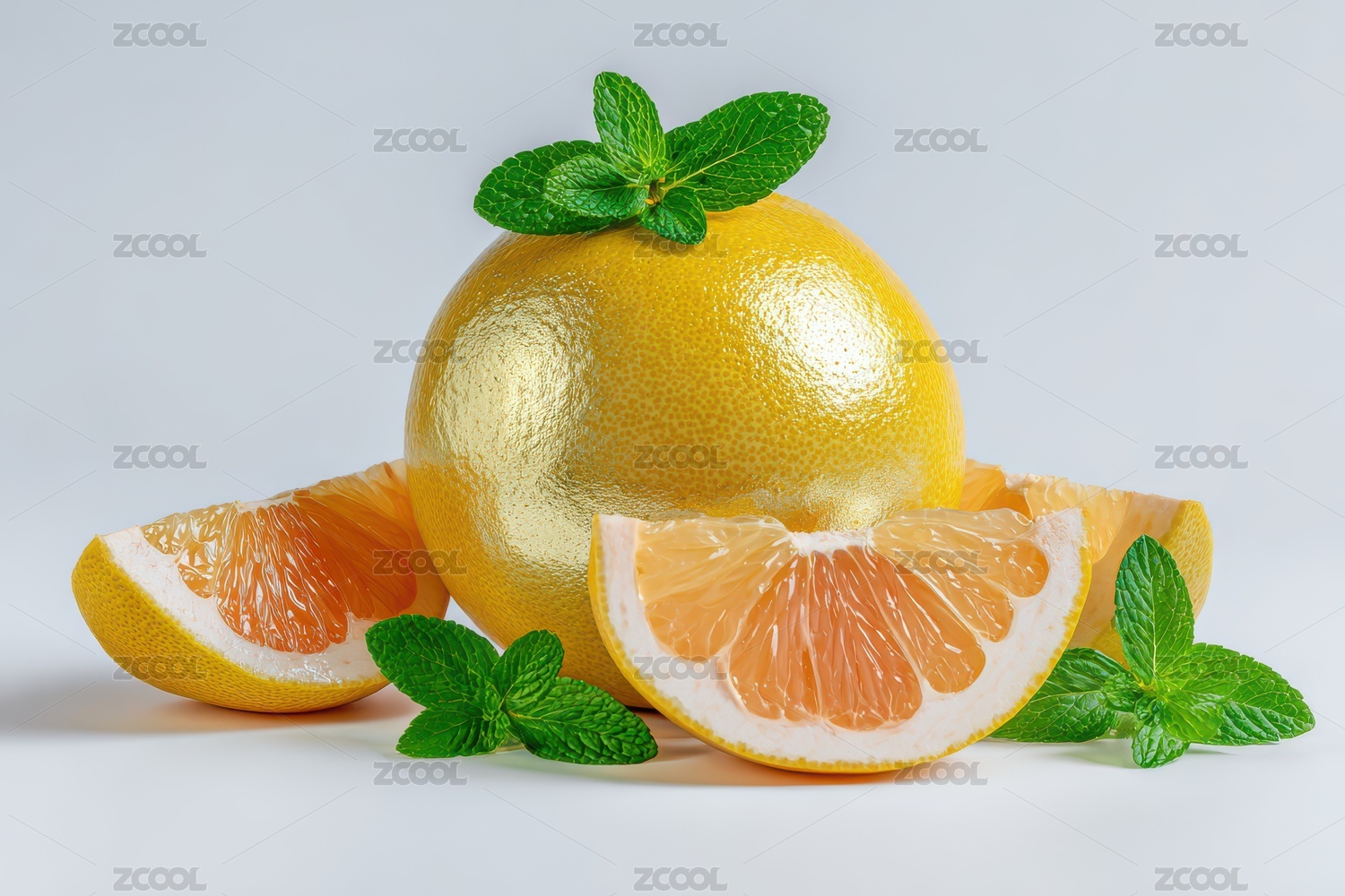 清甜柚子搭配新鲜薄荷的视觉盛宴