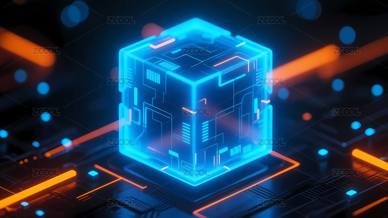 蓝色,背景,橙色,视觉,未来,科技,发光,电路板,交织,立方体