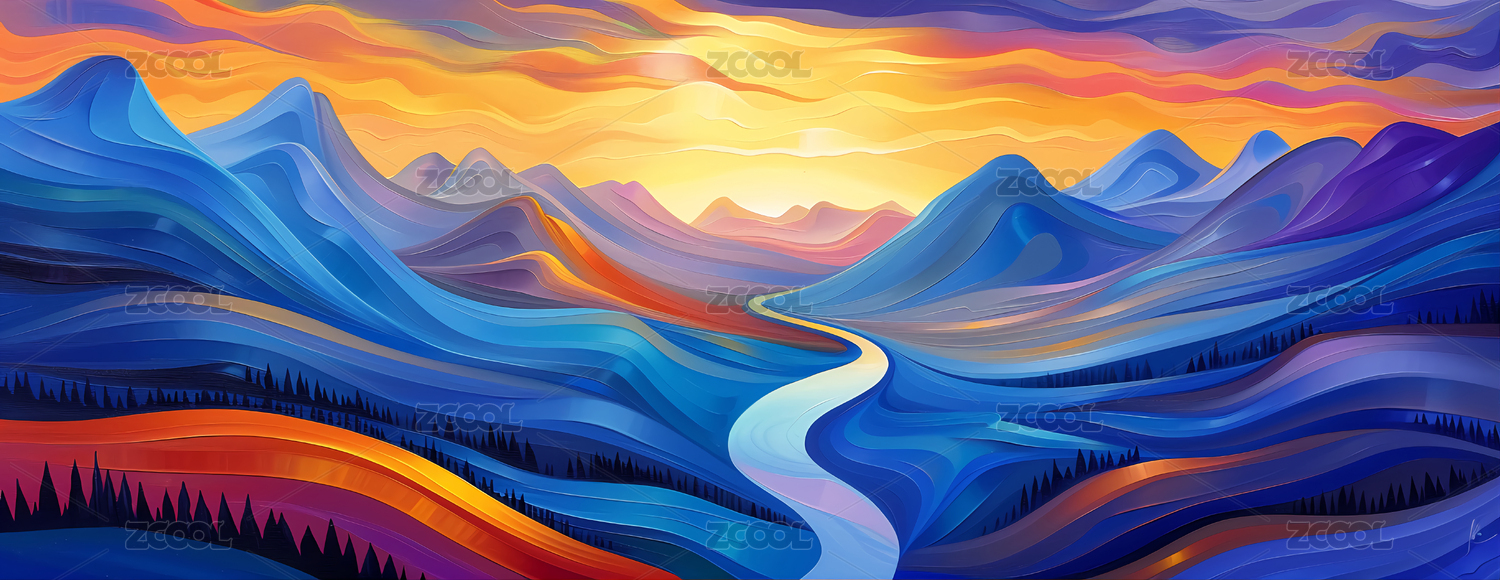 艺术,绘画,迷幻,复古,景观,自然,风景,抽象,色彩,纹理
