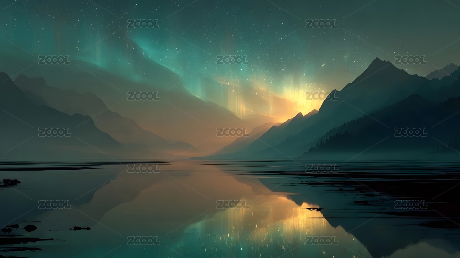 天空,自然,风景,天际,光影,远山,夜空,静谧,神秘,极光