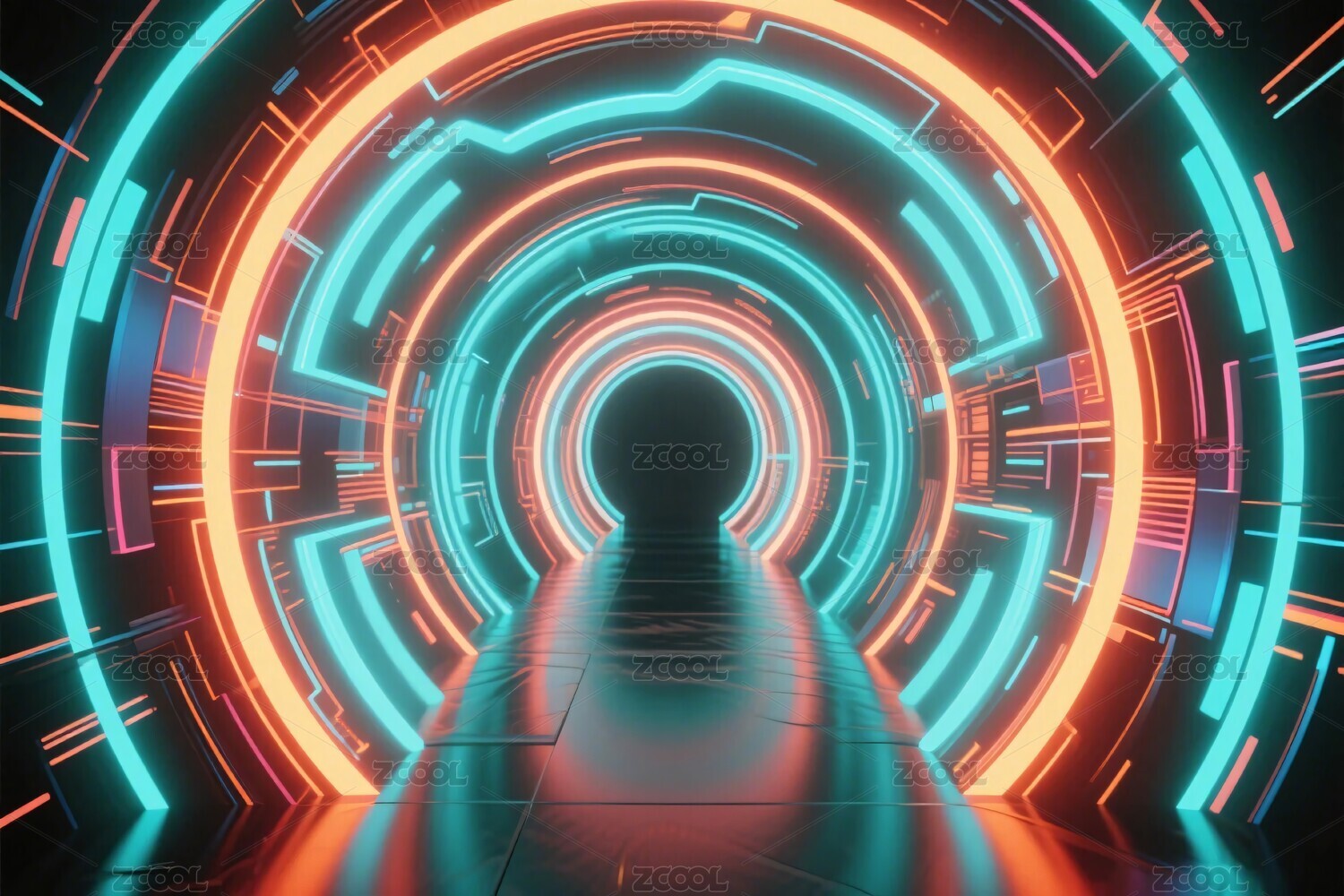 未来感霓虹光圈隧道