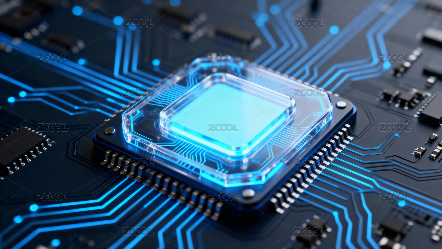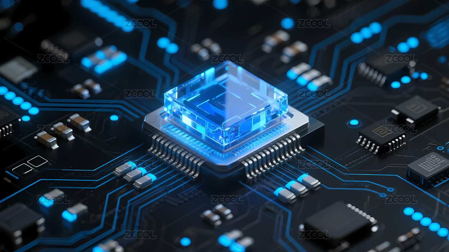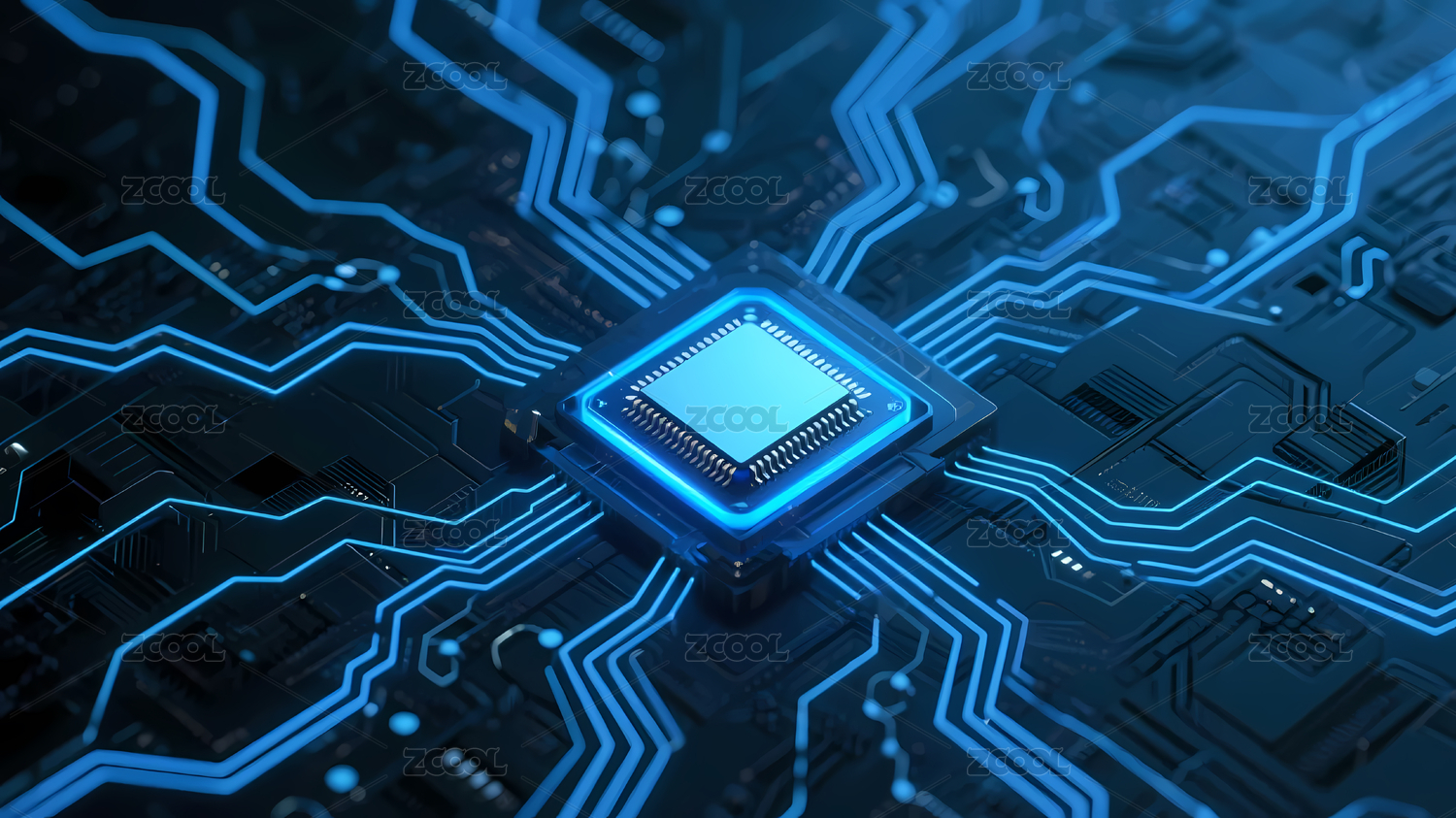 电路板,背景,发光,科技,蓝色,黑色,深色,芯片,电子元件,环绕