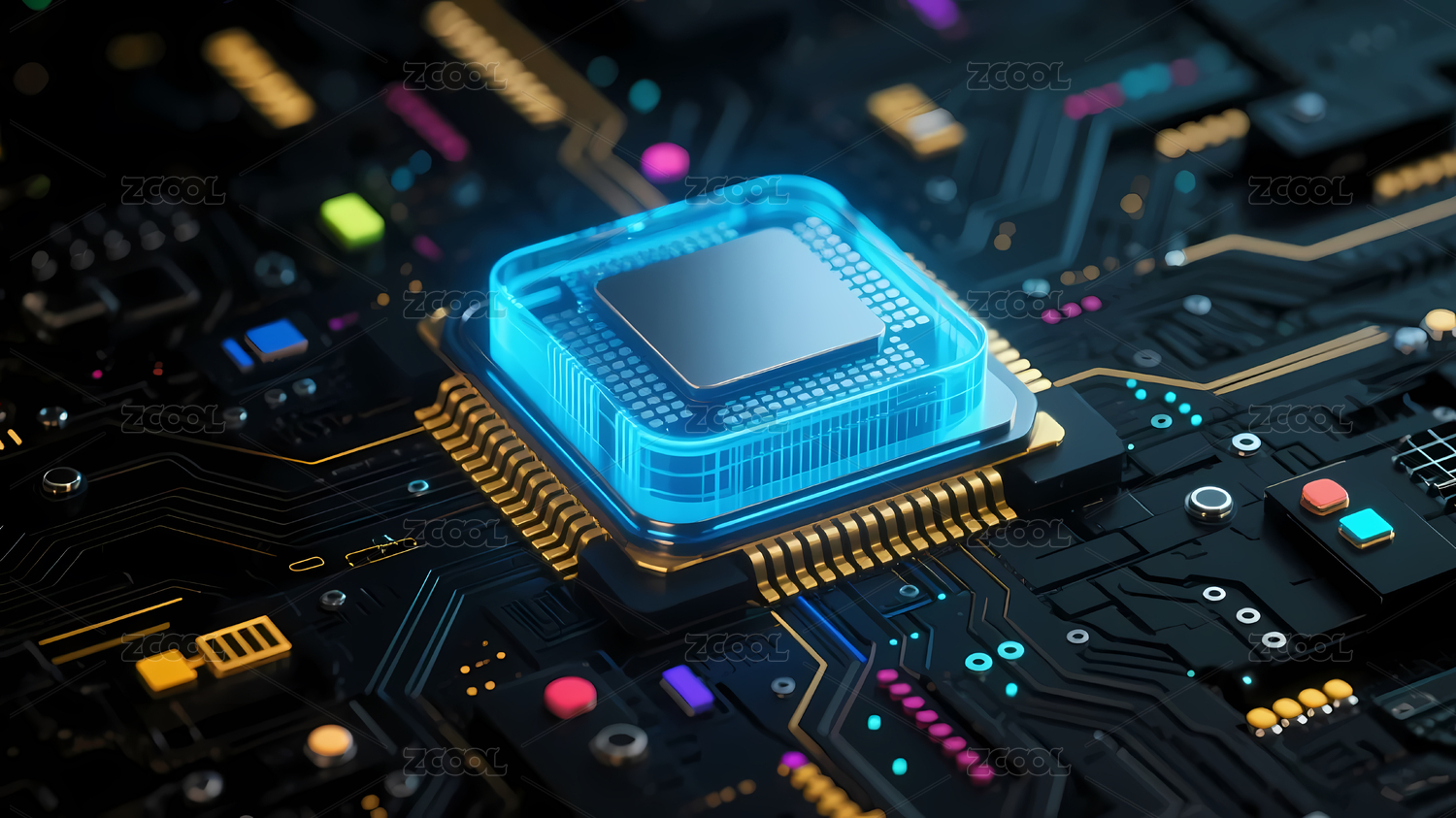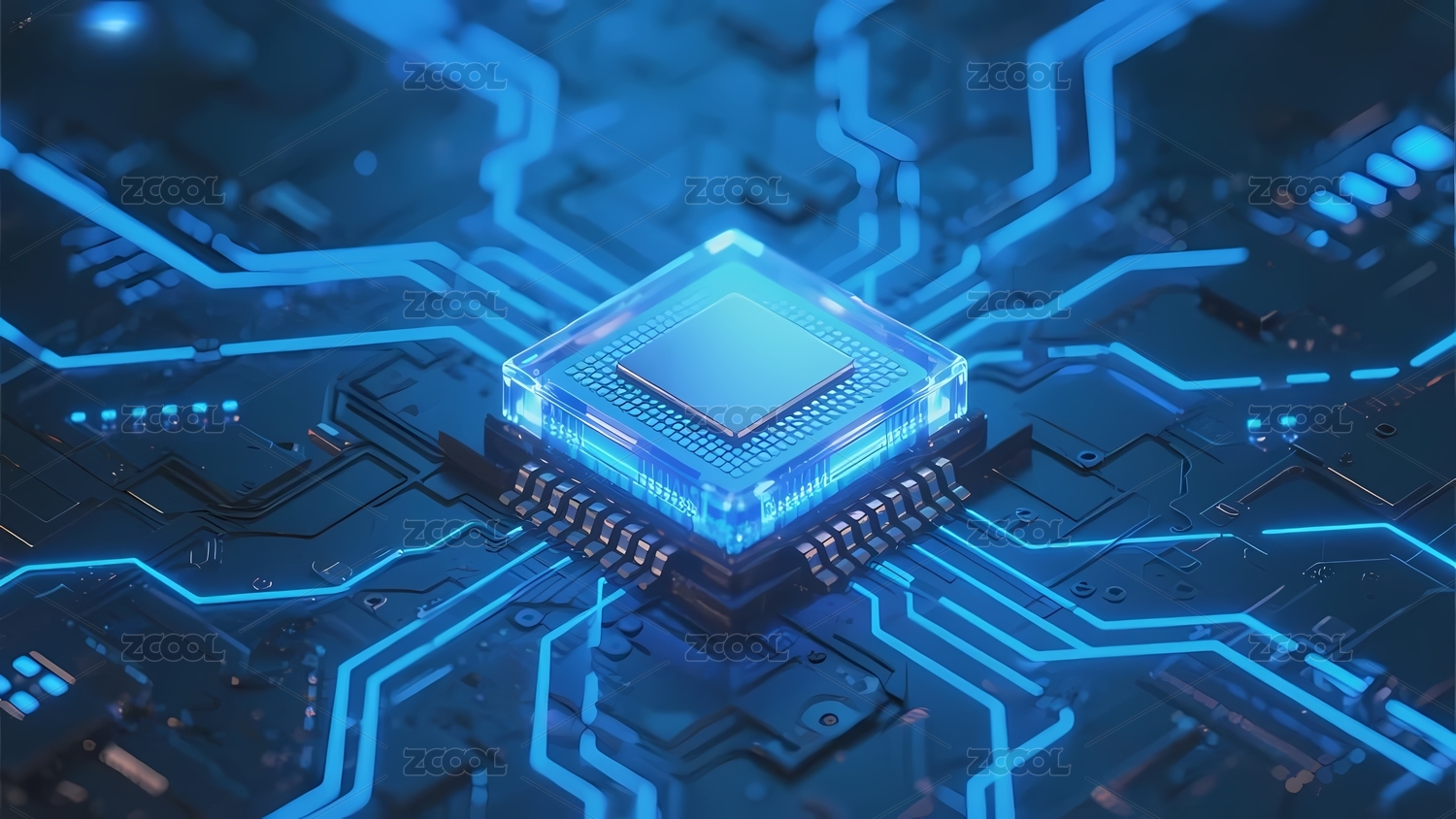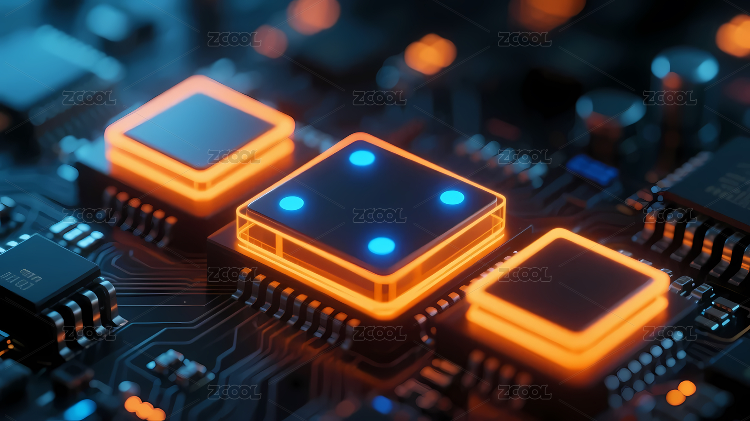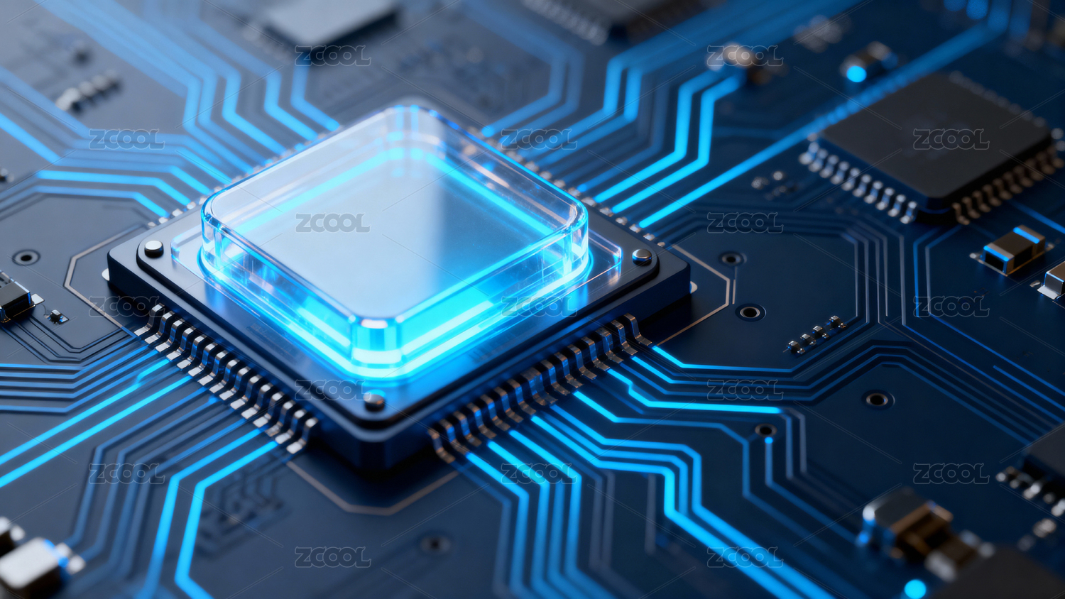 电路板,背景,发光,科技,蓝色,黑色,深色,芯片,电子元件,环绕