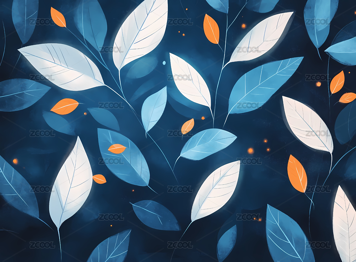 蓝色叶子图案图