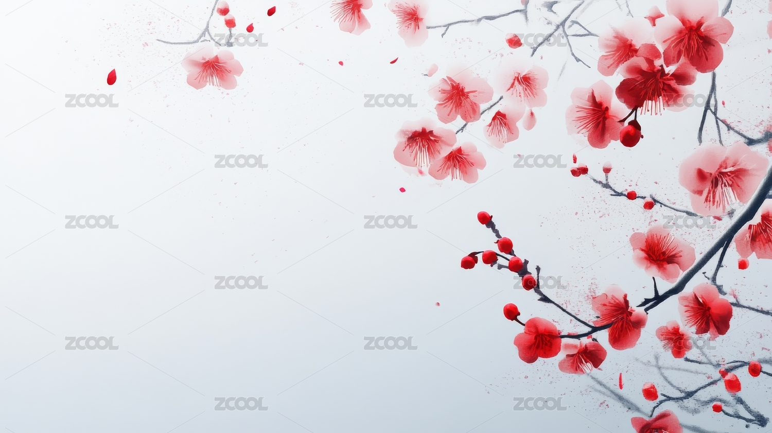 水墨红梅枝
