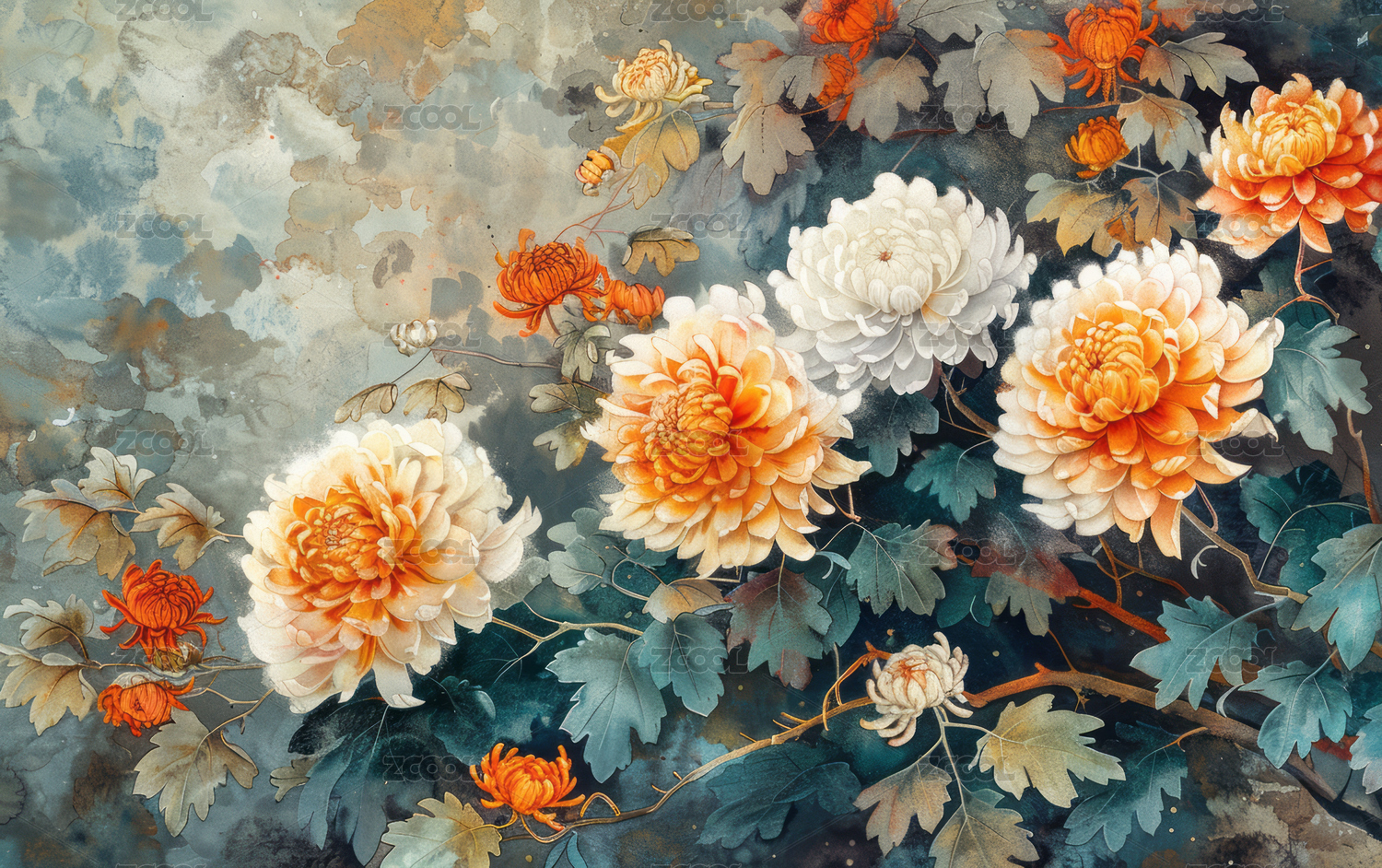 重阳时节美丽菊花插画重阳节中国风赏菊插图