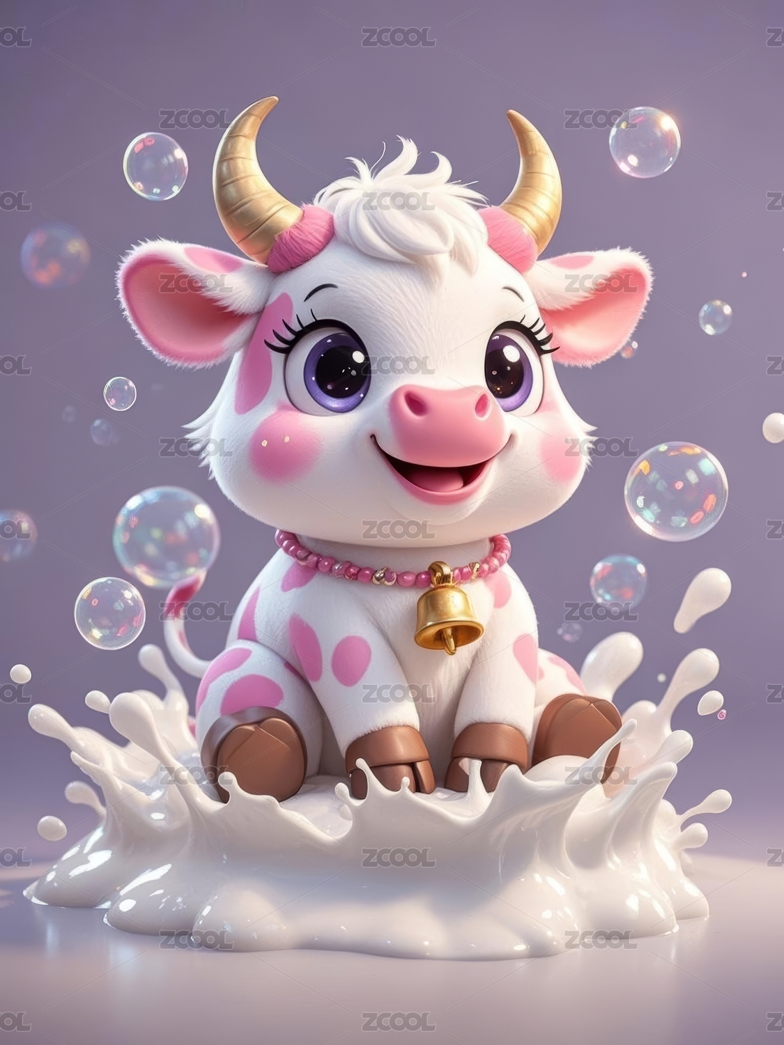 奶牛,牛奶,水花,浪花,可爱,萌萌哒,粉红色