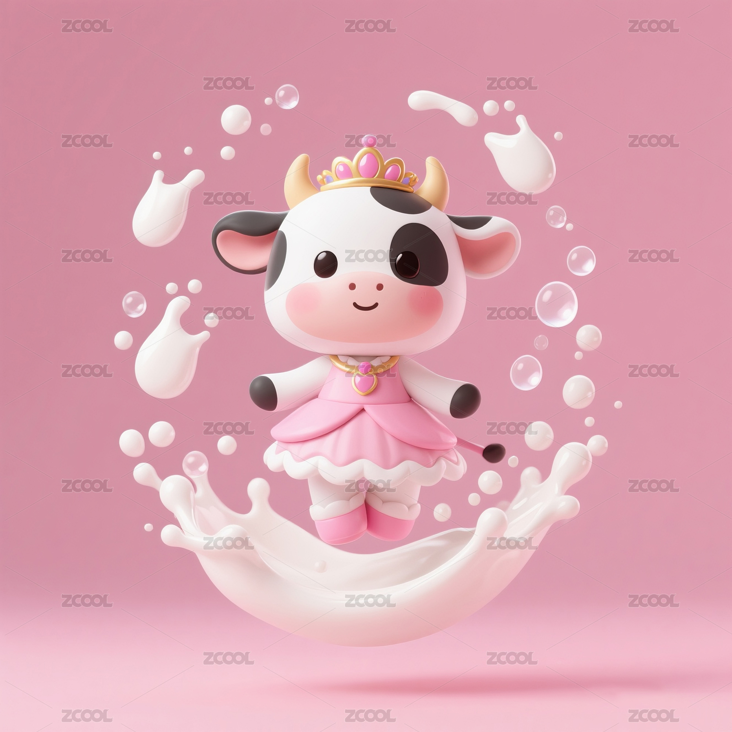 在牛奶里跳舞的奶牛新娘动漫卡通形象