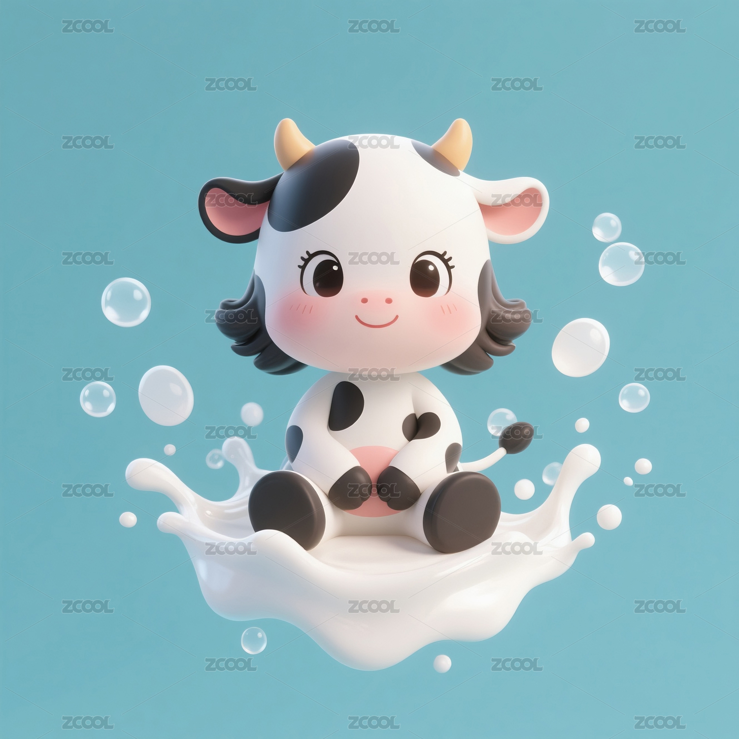 坐在牛奶里穿衣服的奶牛宝宝动漫卡通形象