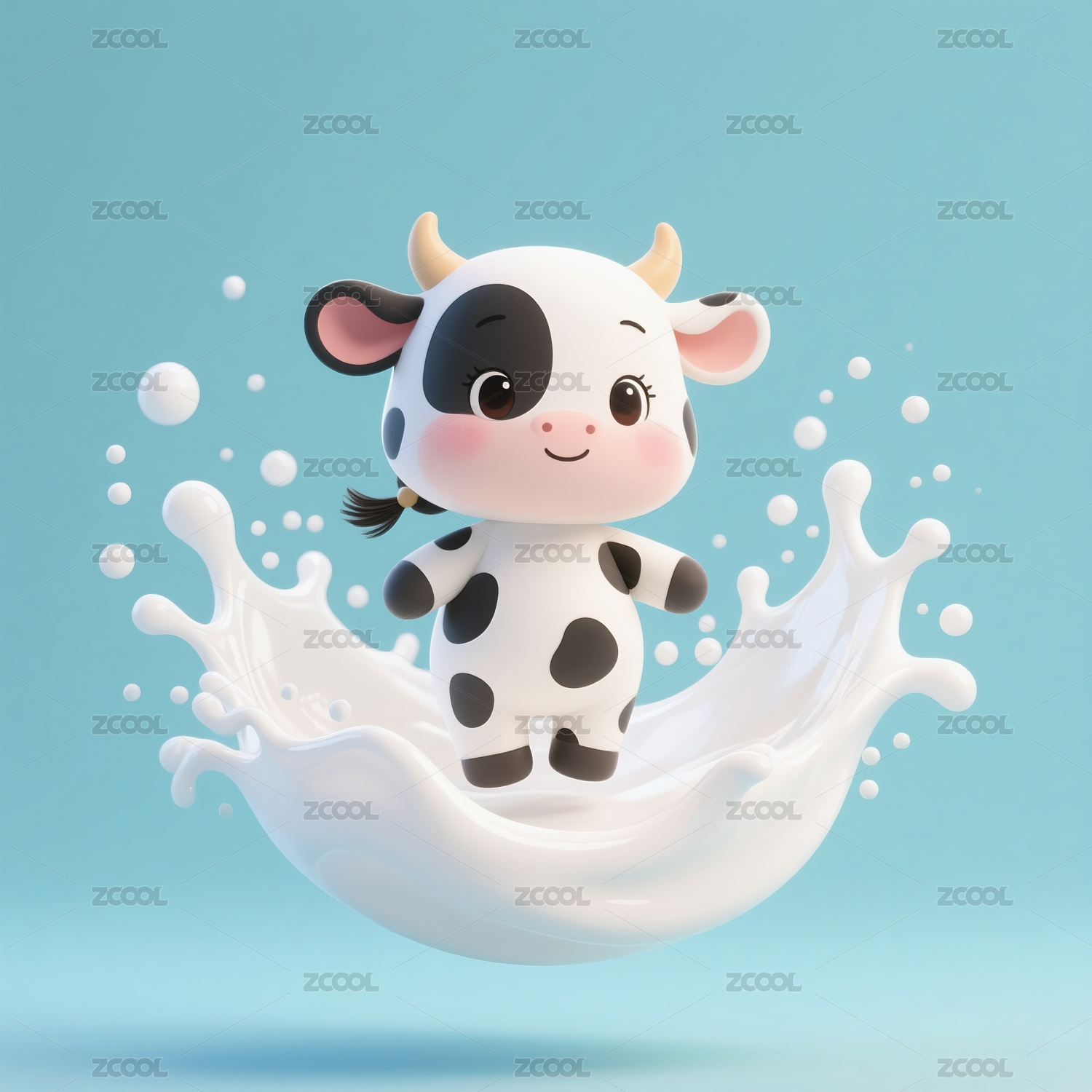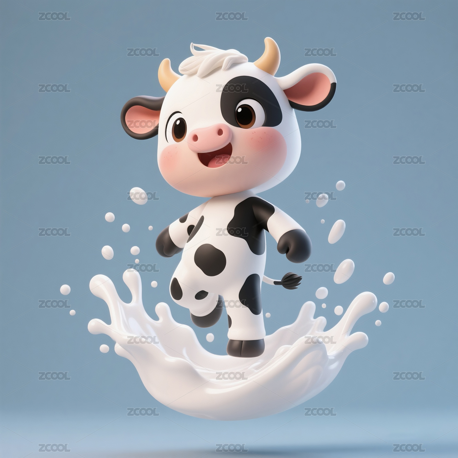站在牛奶里的奶牛宝宝动漫卡通形象