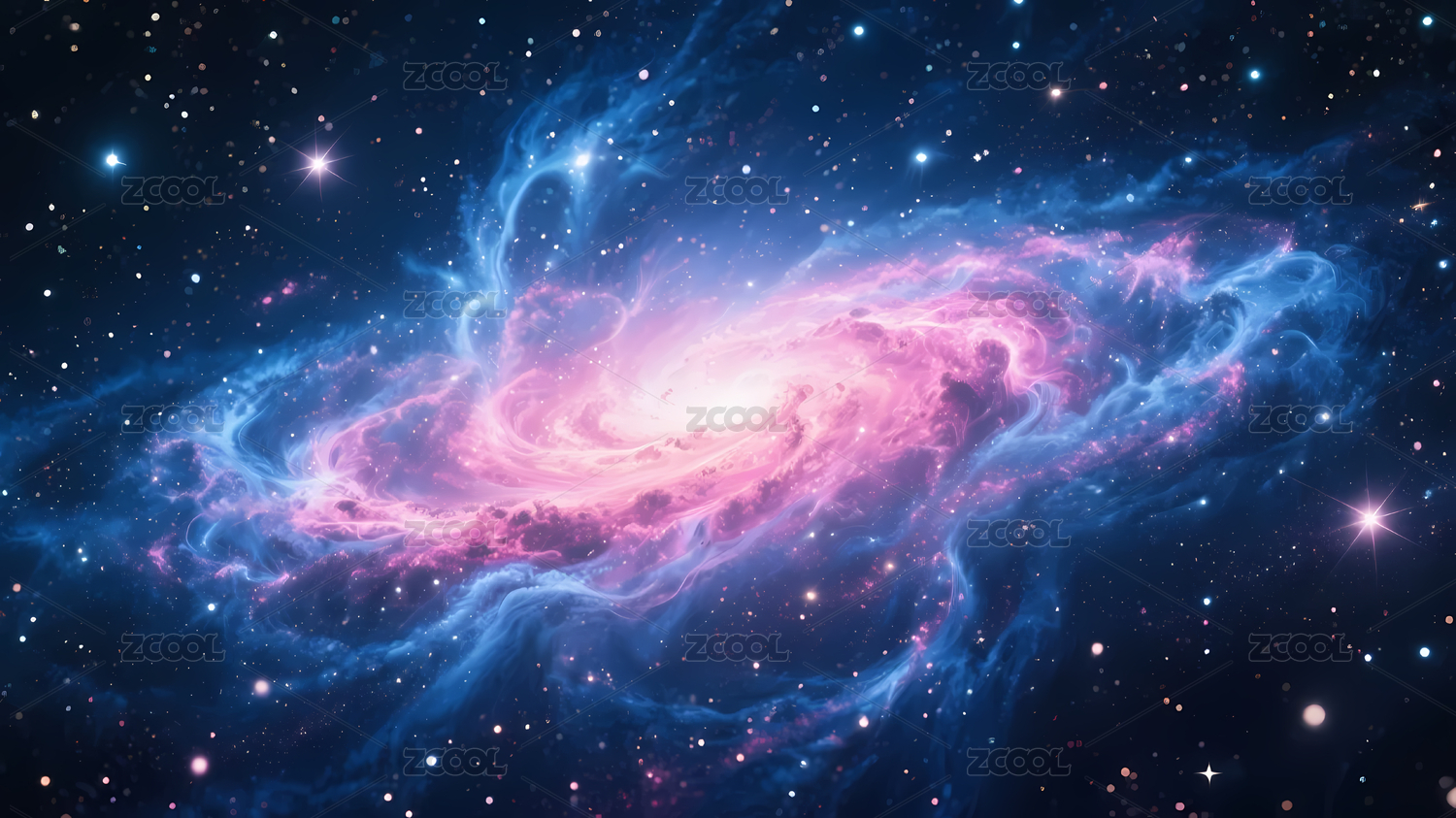 粉蓝旋涡星系星空