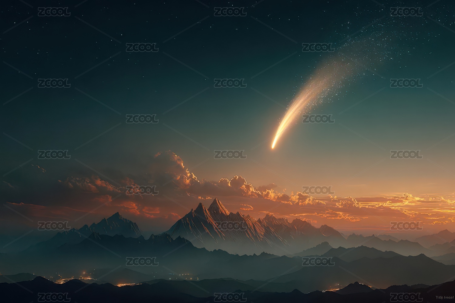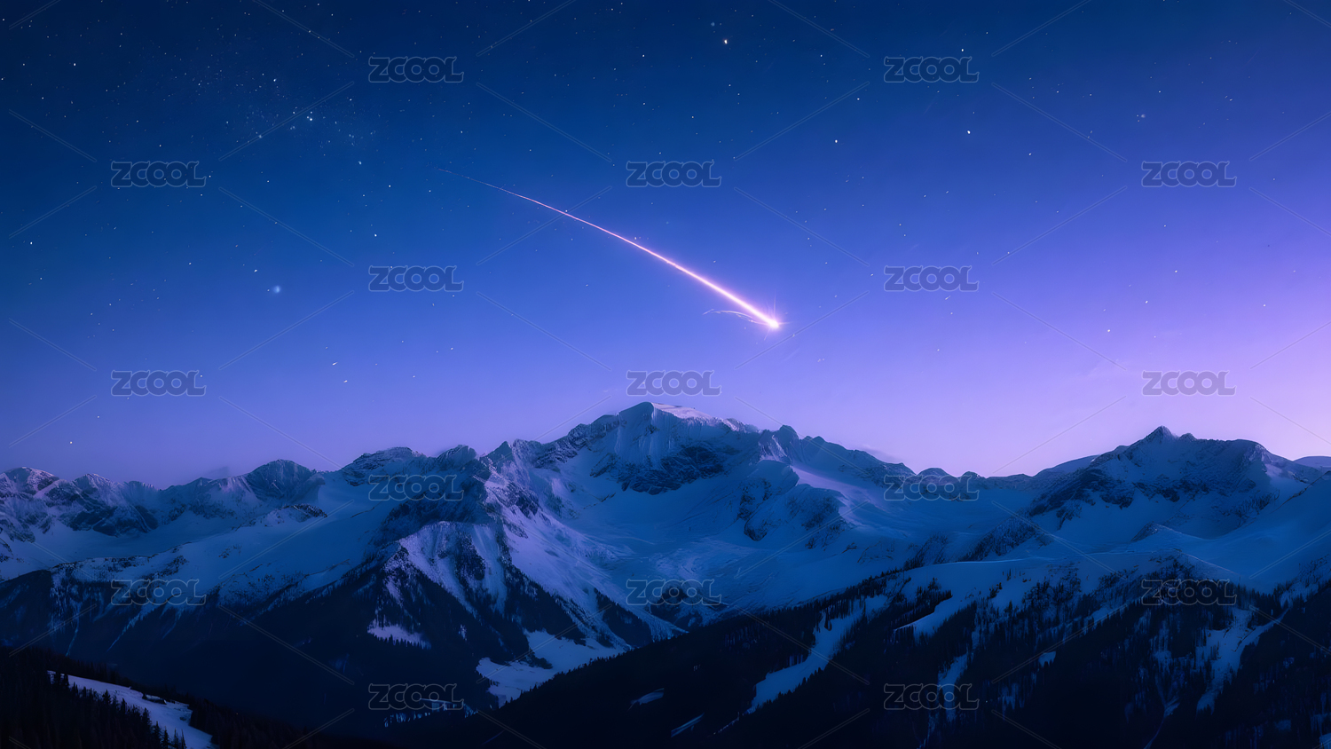 蓝色,背景,白色,深邃,夜空,流星,山脉,轮廓,色调,整体