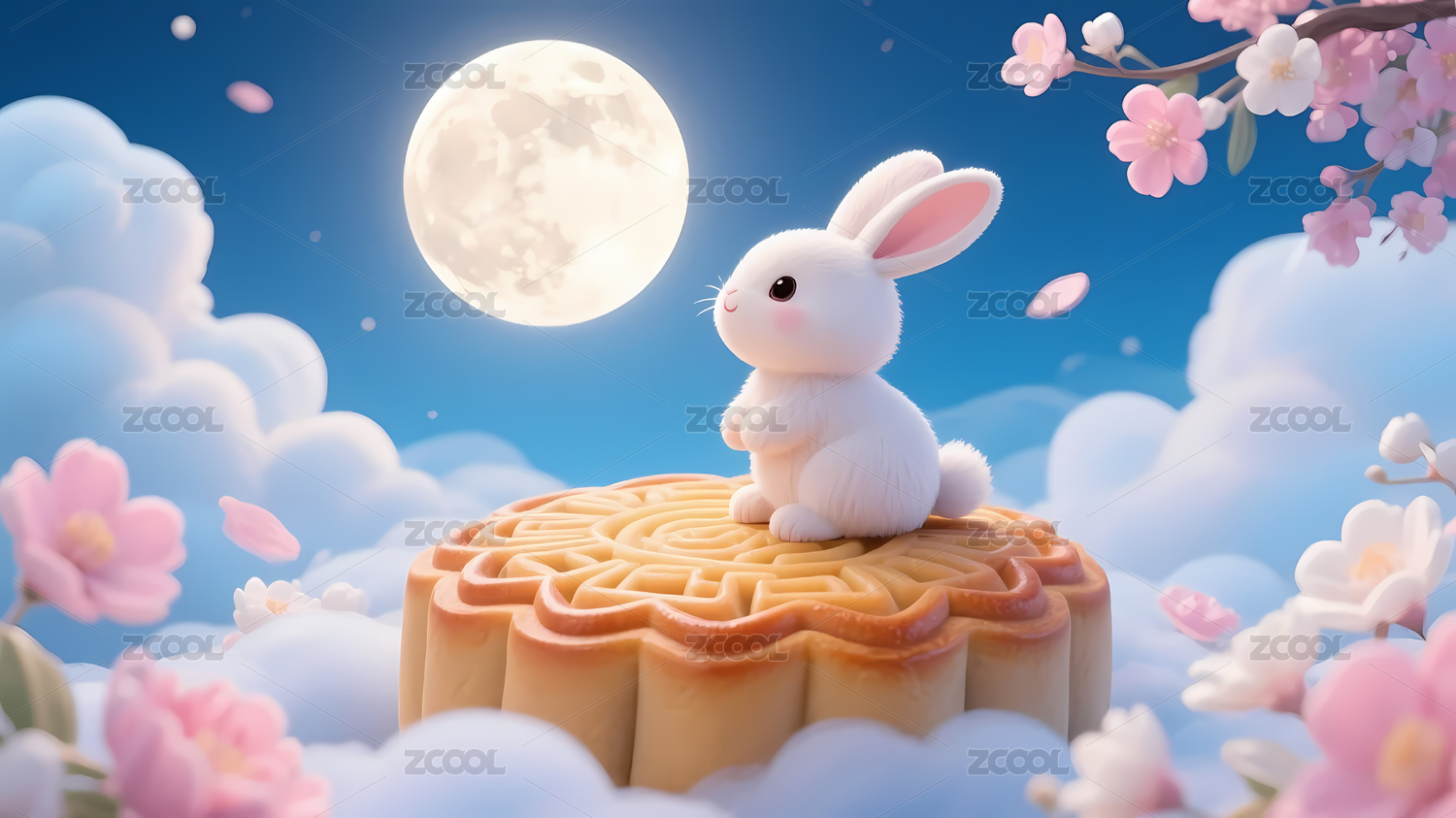 白兔月饼夜空花朵