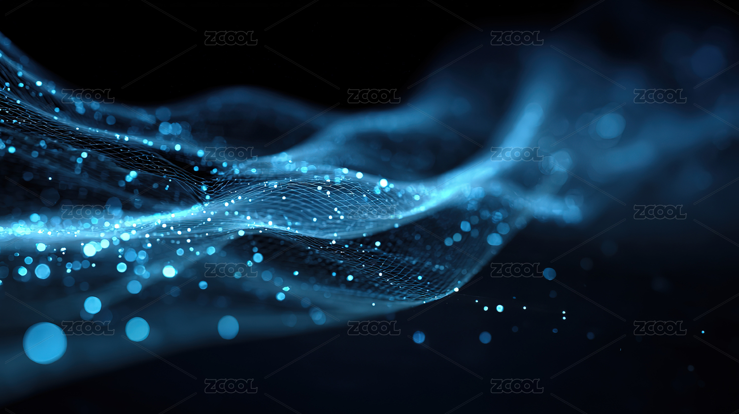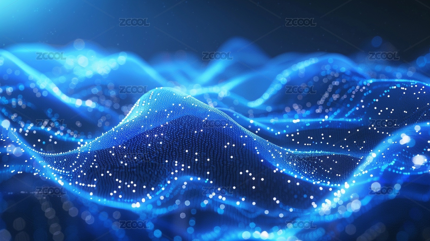深蓝波浪与光点的科技感图