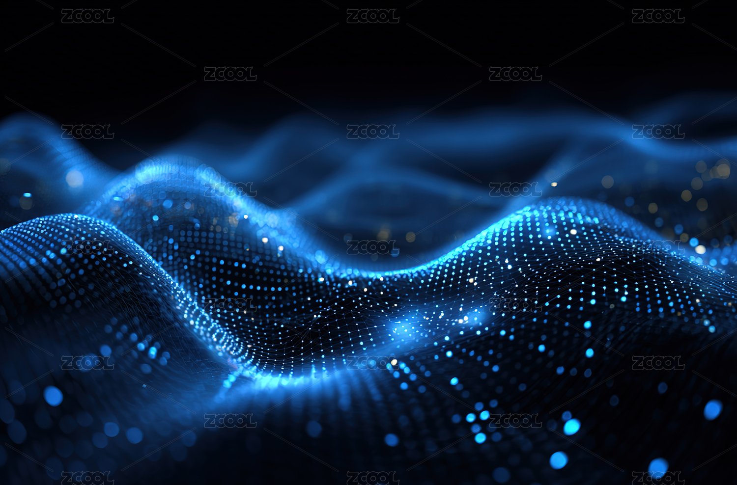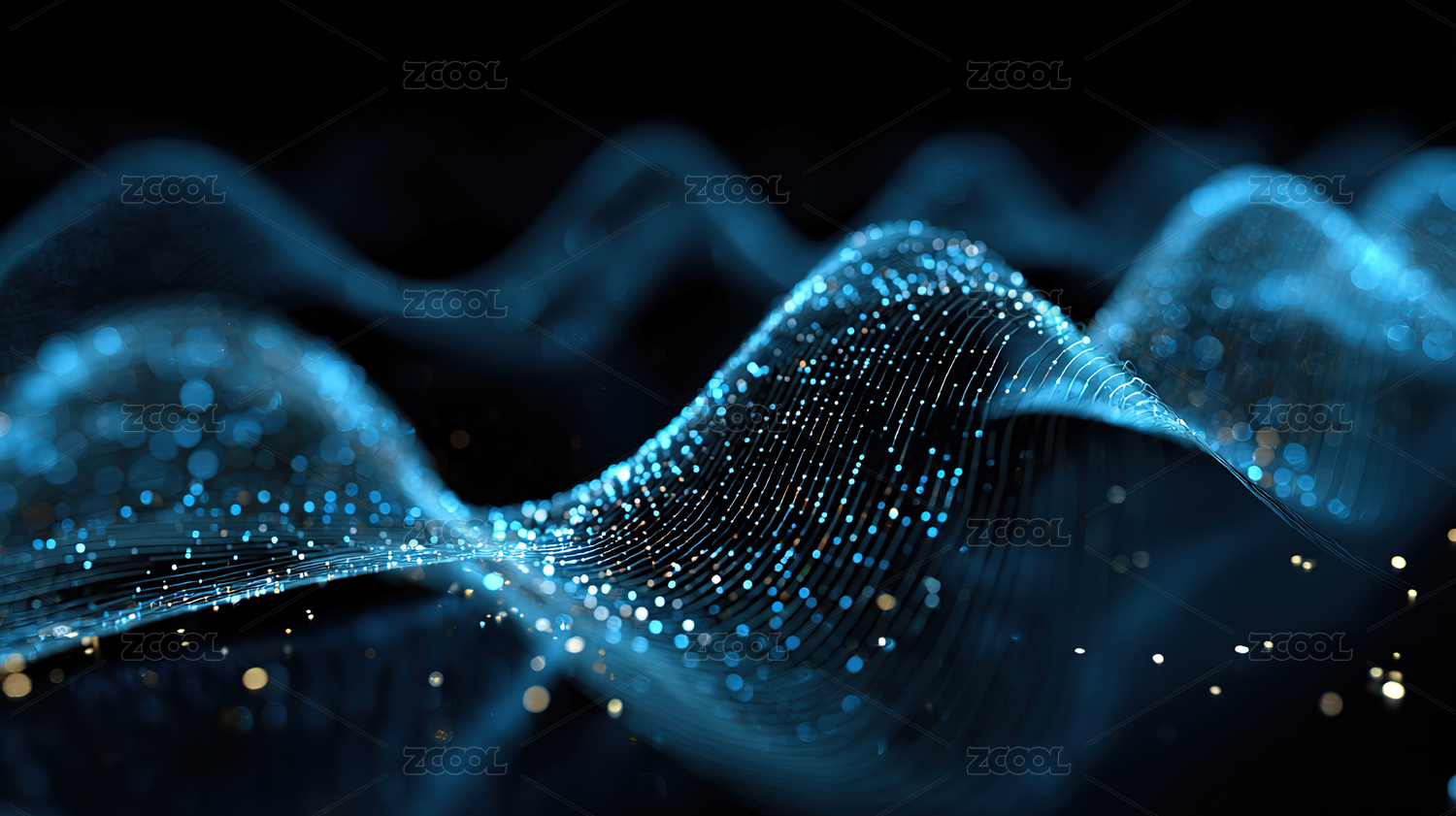 蓝色光点构成的波浪形图案