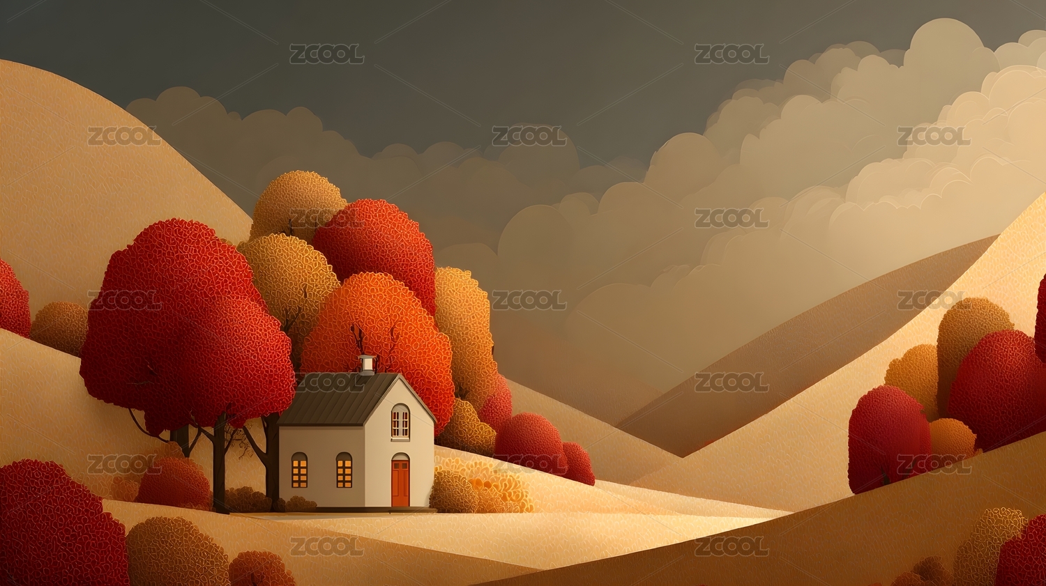 橙色,黄色,远山,自然,树冠,风景,山丘,地平线,飞鸟,阴影