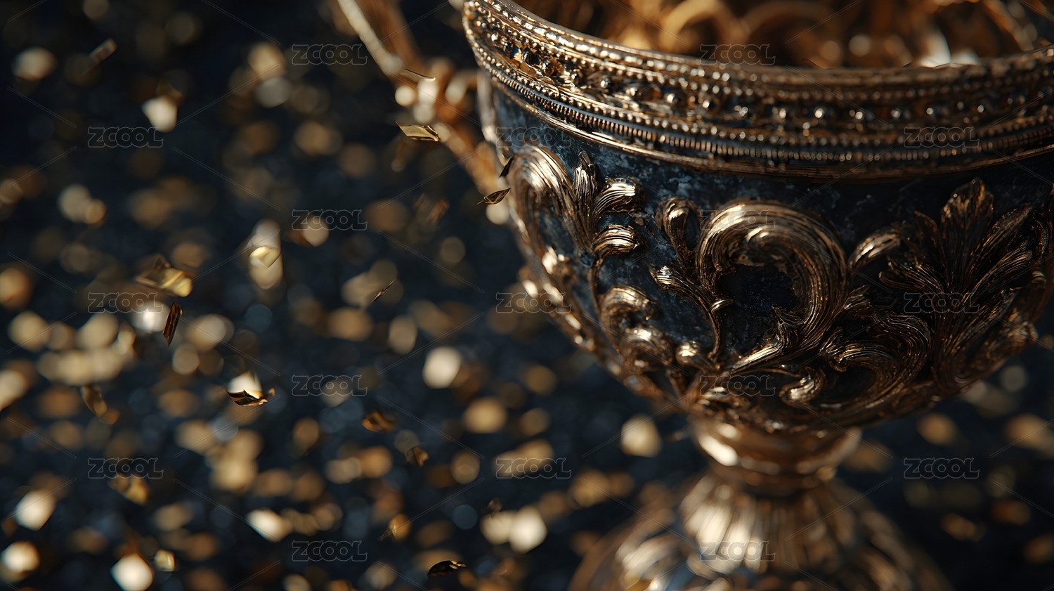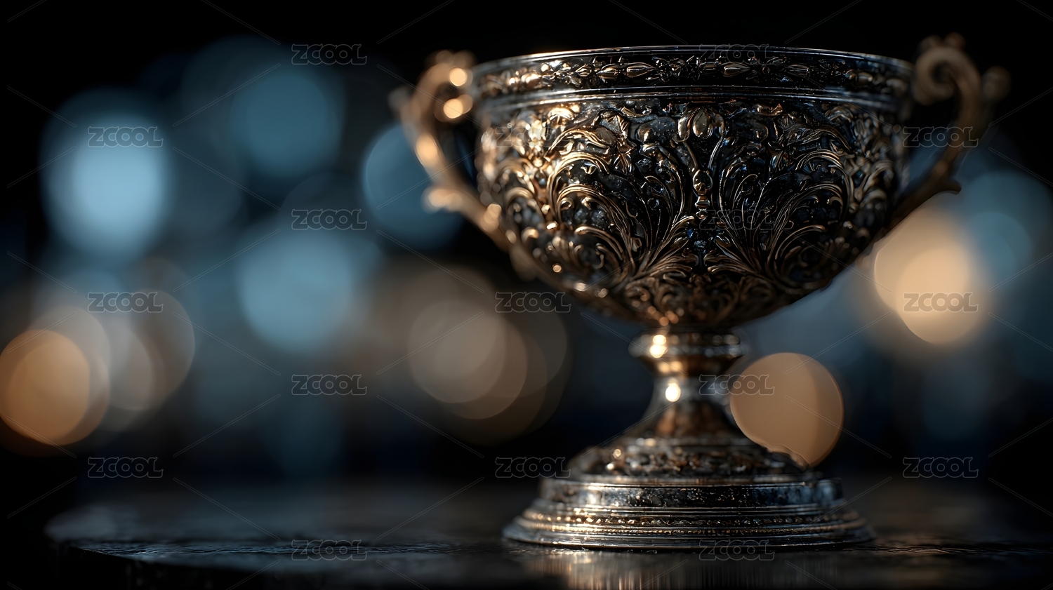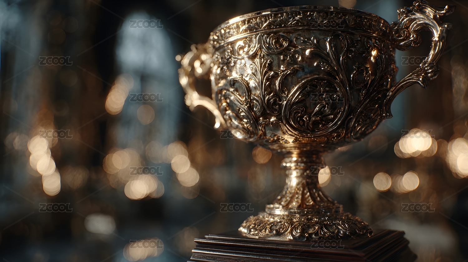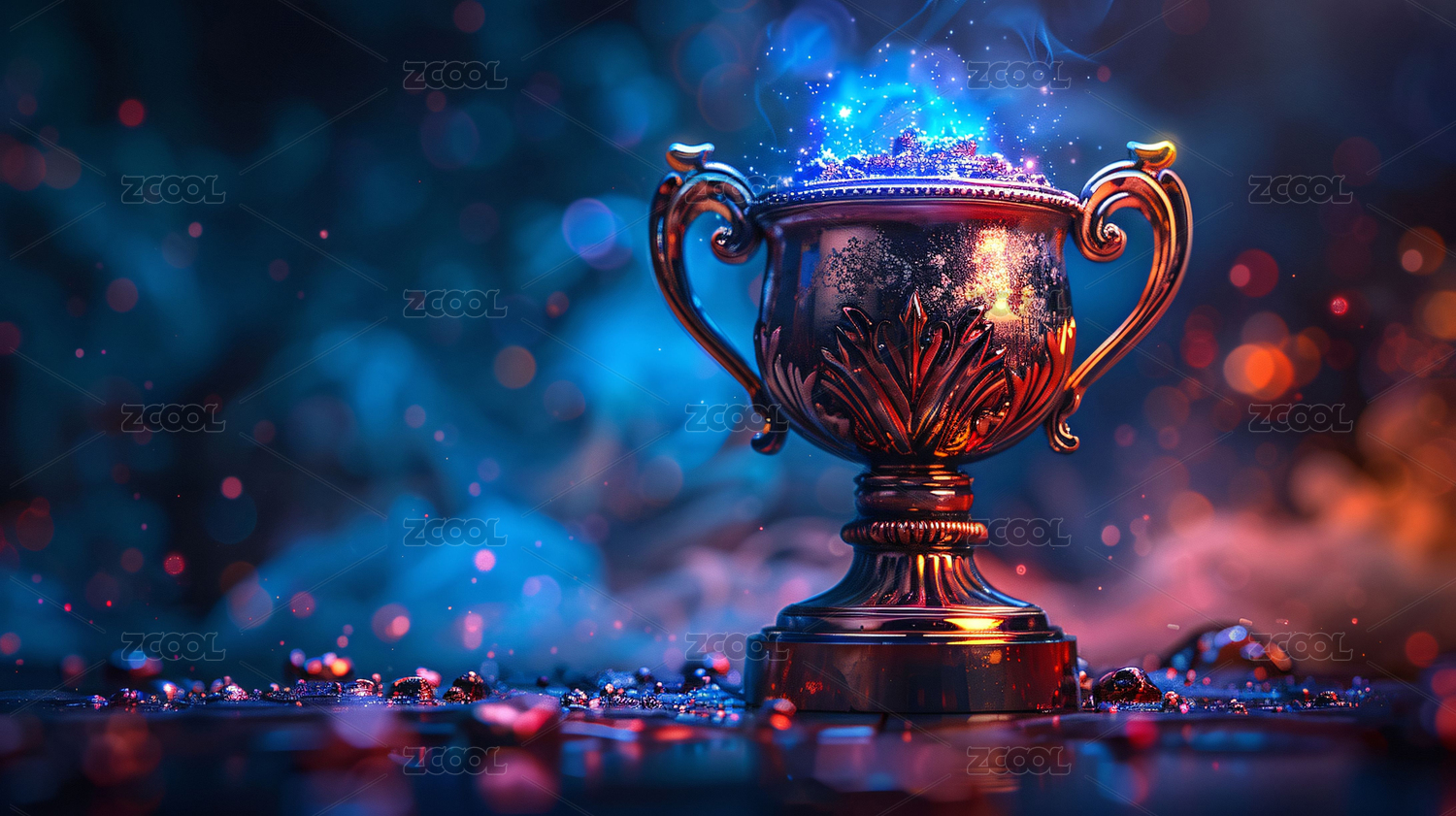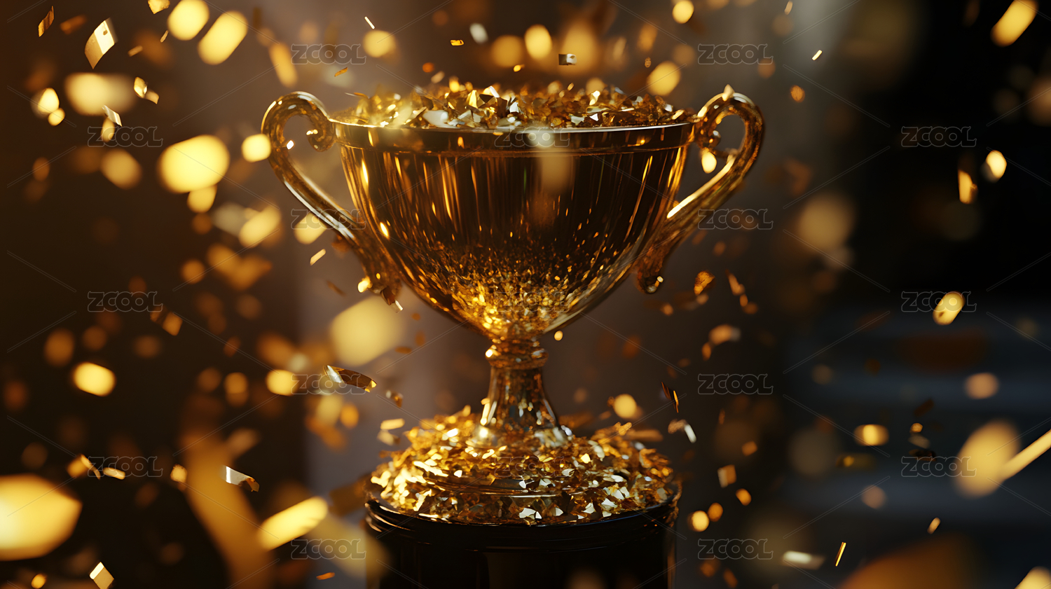 金牌奖杯竞赛奖杯在抽象模糊的散景背景