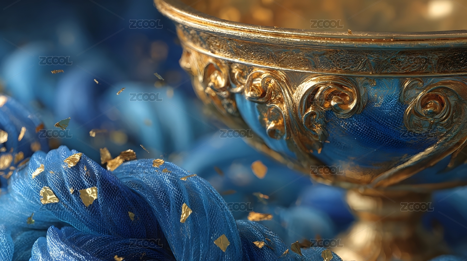 背景,图案,奖杯,蓝色,花纹,金色,布料,纹理,装饰,细节