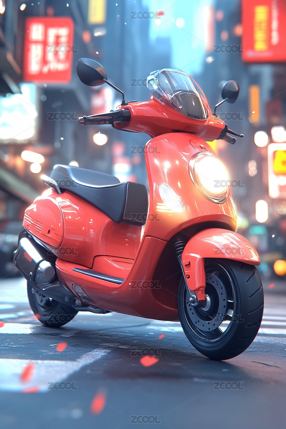 摩托车,橙色,复古,插画,交通工具,车轮,座椅,车灯,后视镜,花朵