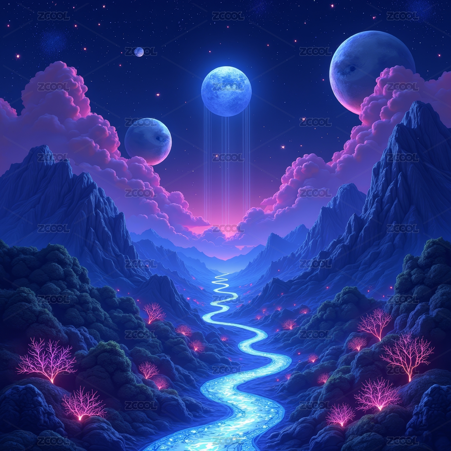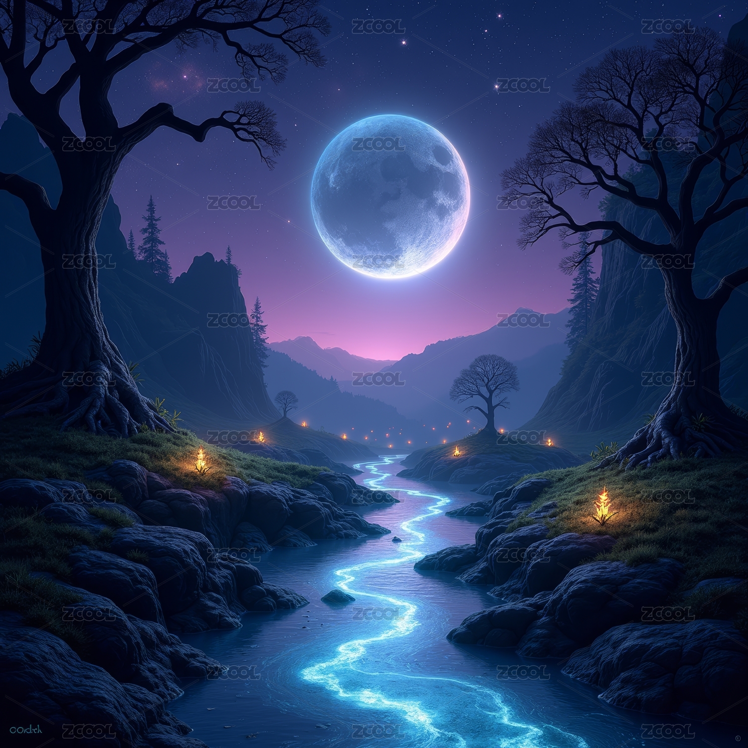 自然,户外,神秘,光影,溪流,月夜,奇幻,紫色