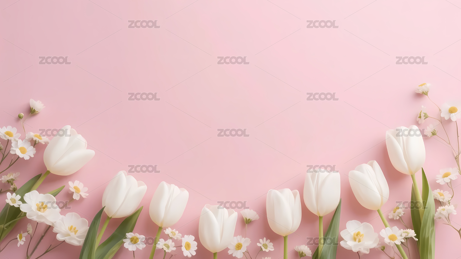 白色郁金香粉色雏菊