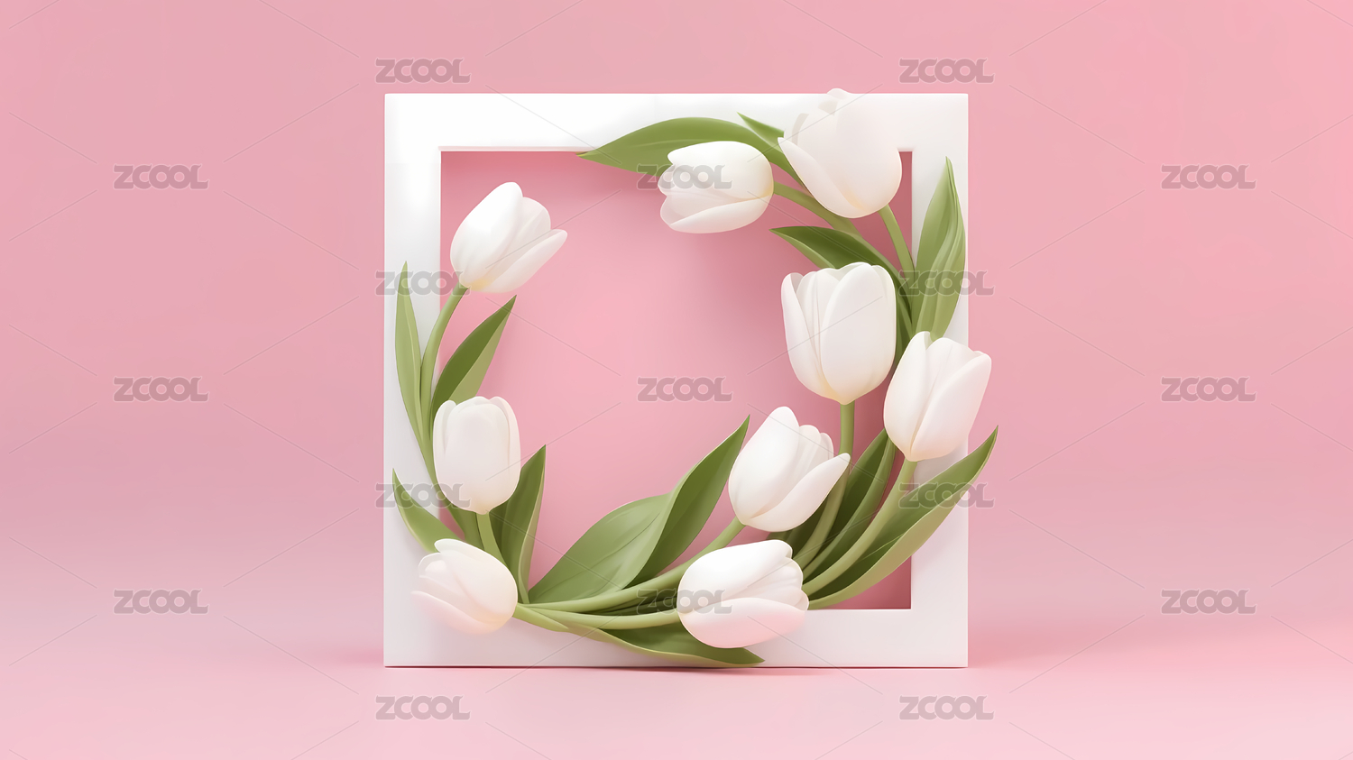 白框郁金香粉红背景