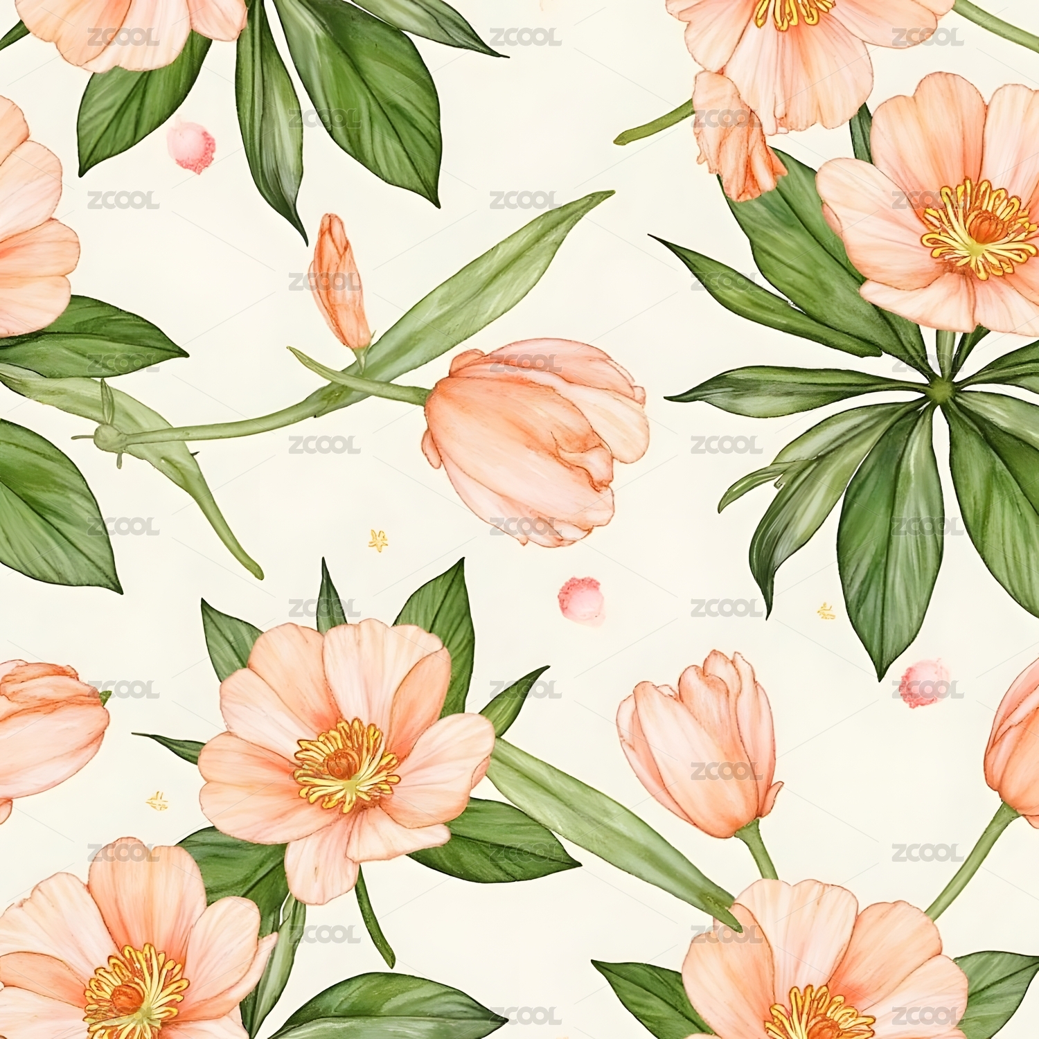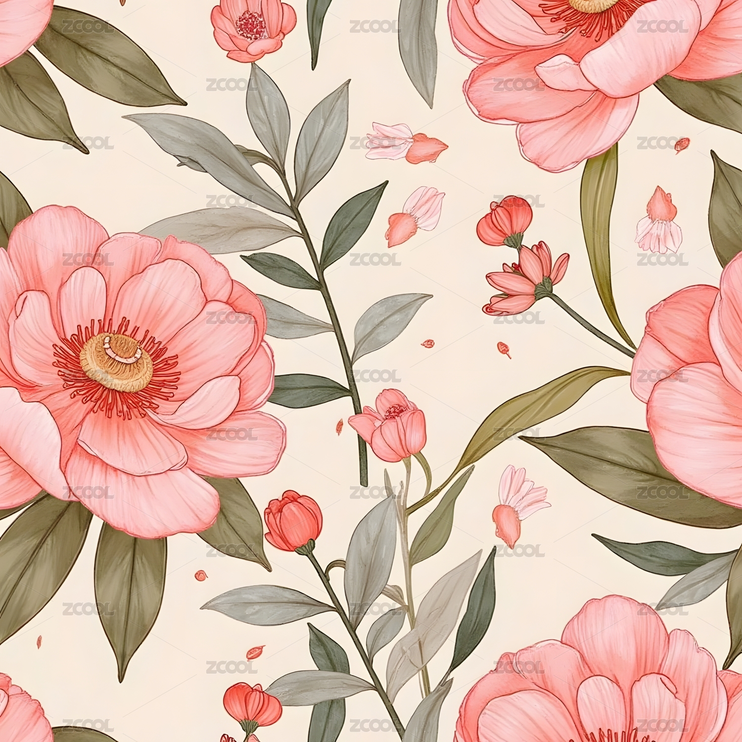 水墨牡丹盛开花卉中国风复古布料底纹图案