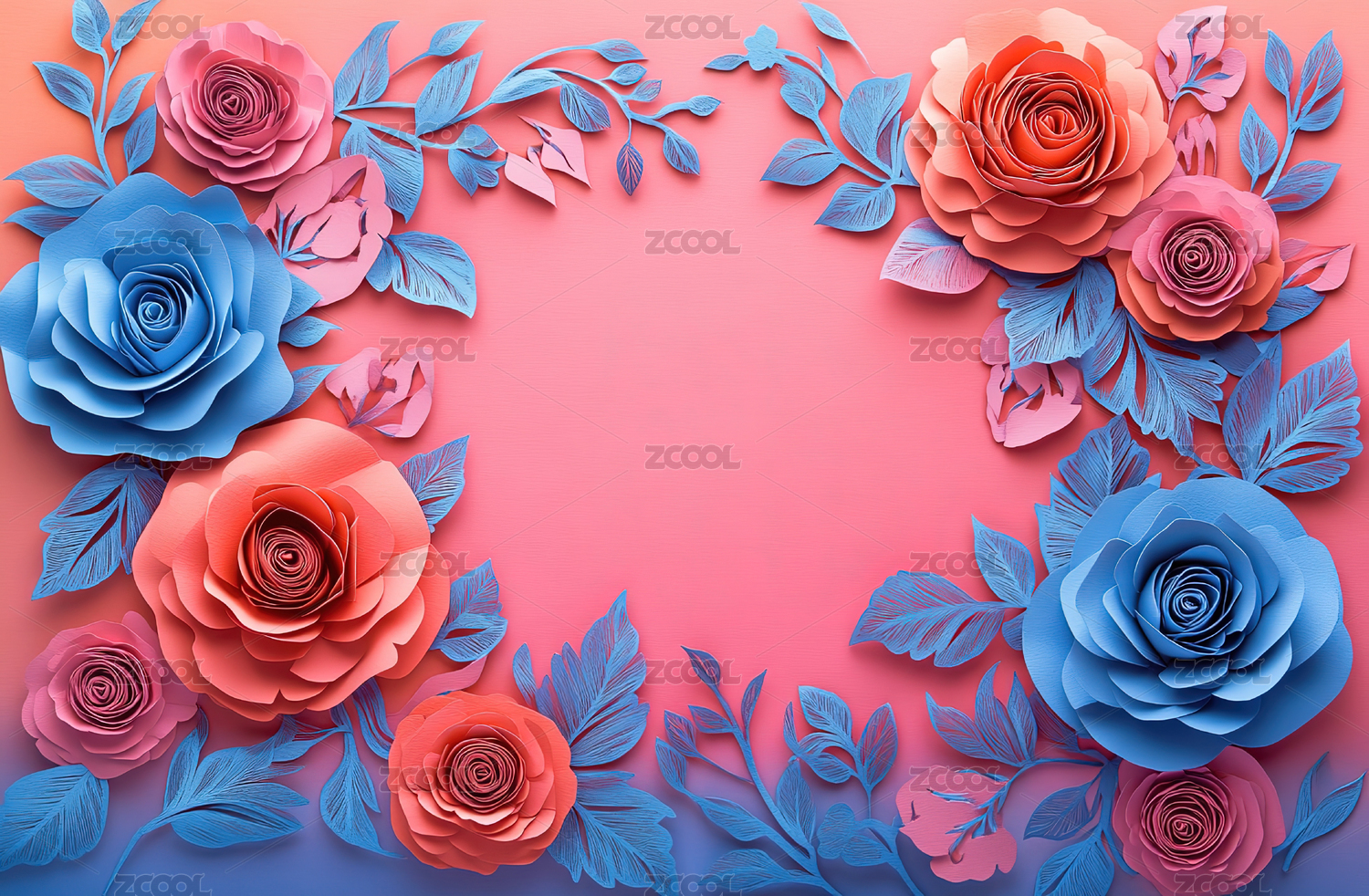 粉色纸艺玫瑰花边框