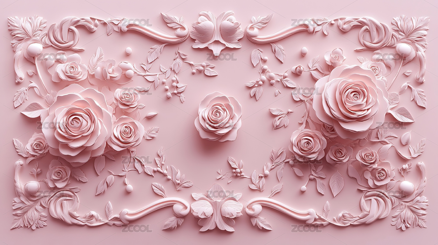 粉色花卉浮雕边框