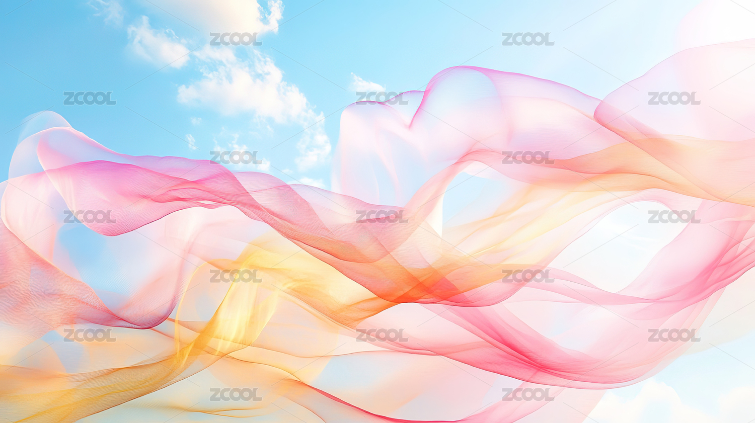 彩绸飘舞蓝天背景