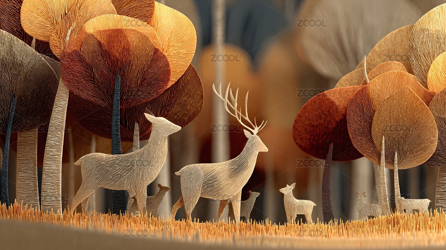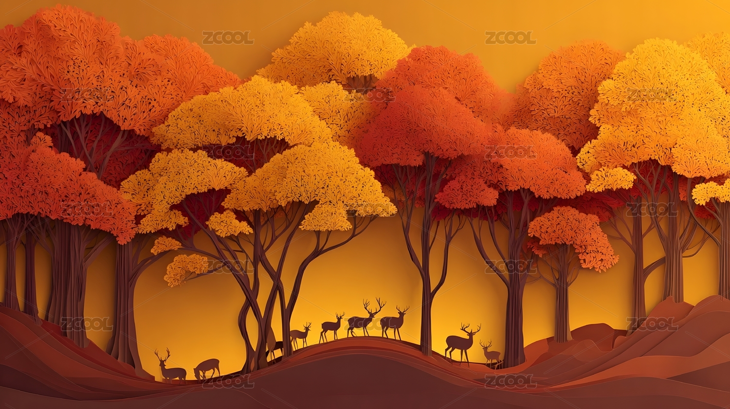 自然,橙色,蓝色,绿色,植物,树木,树干,背景,森林,场景