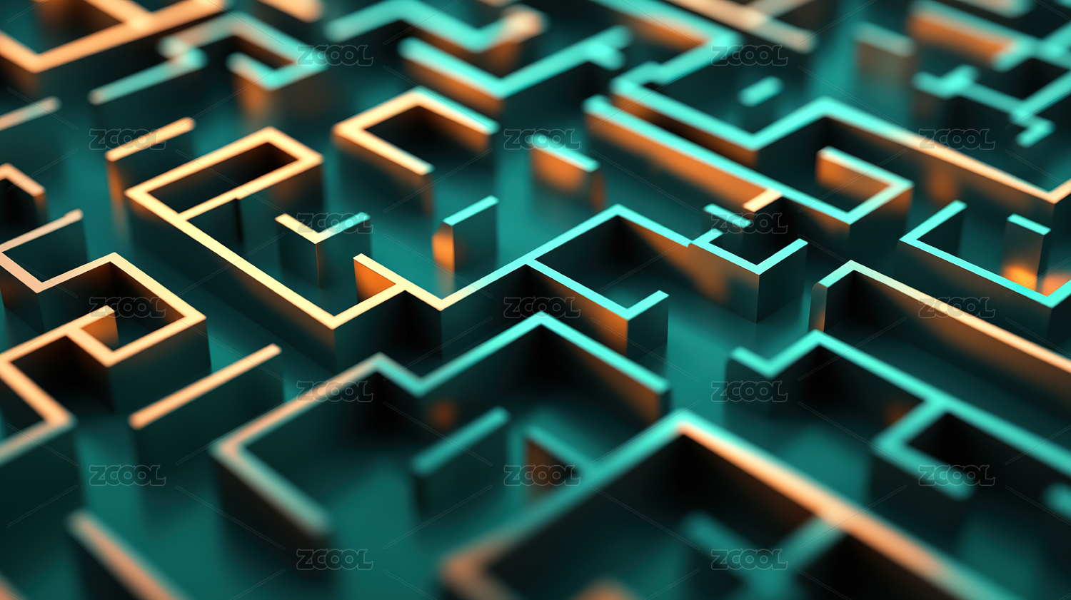 蓝橙迷宫科技感插图
