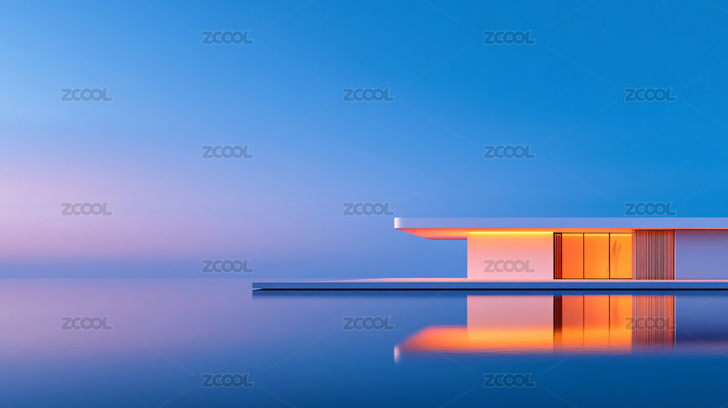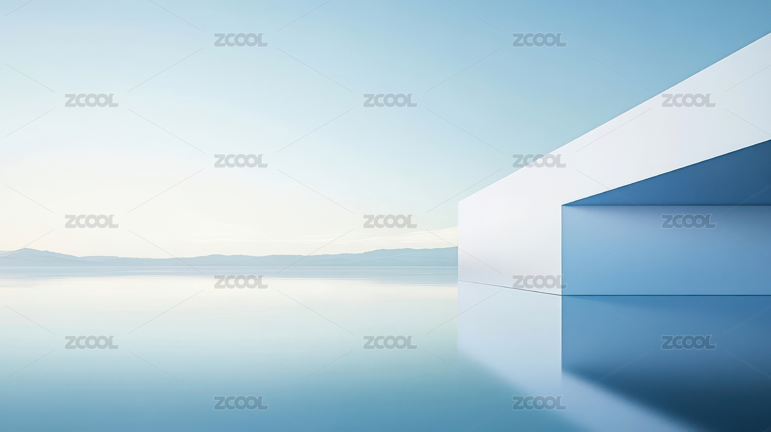平静海面上的现代感玻璃建筑
