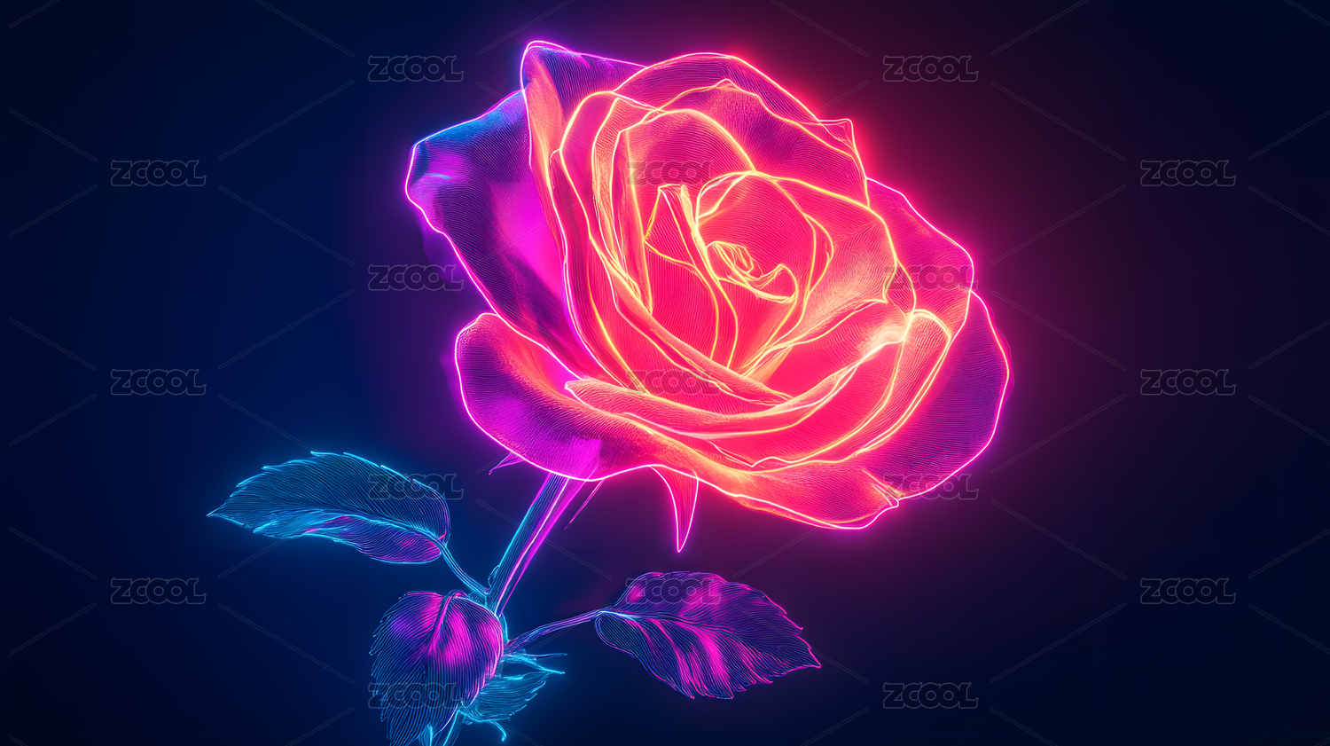 梦幻霓虹玫瑰花插画