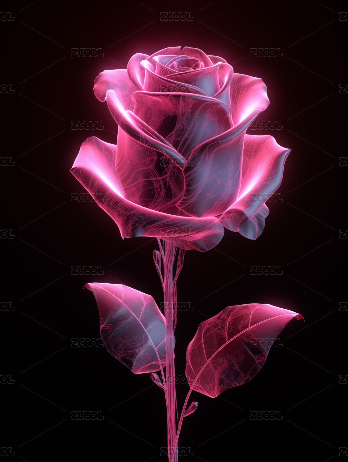 唯美的3d透明质感玫瑰花